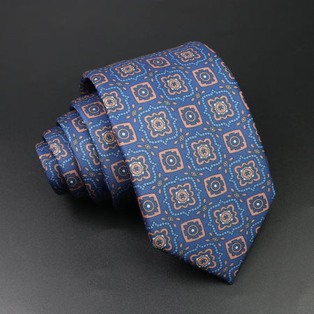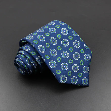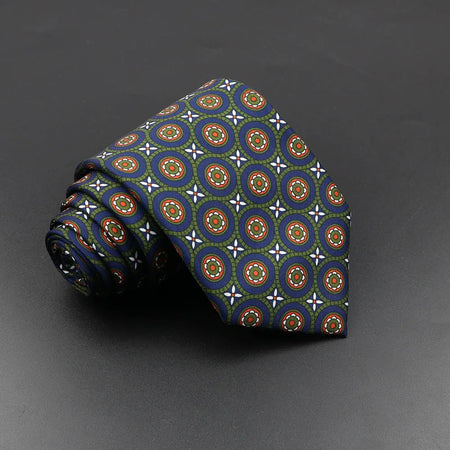 Мъжки копринен вратовръзка 7,5см - синя зелена оранжева точка и флорален дизайн