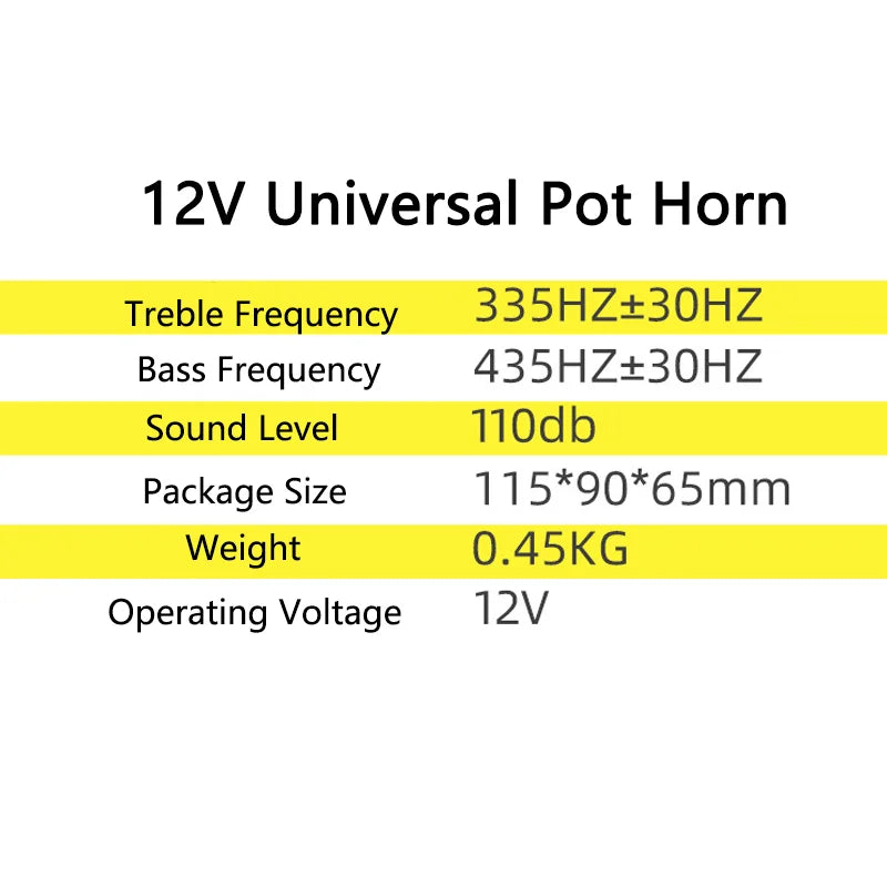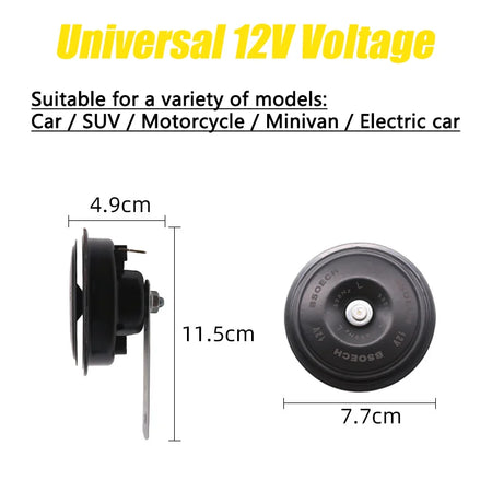- Включва два клаксона и монтажни принадлежности—инсталирайте ги като двойка за балансирано, силно предупреждение по дължината на вашето превозно средство.