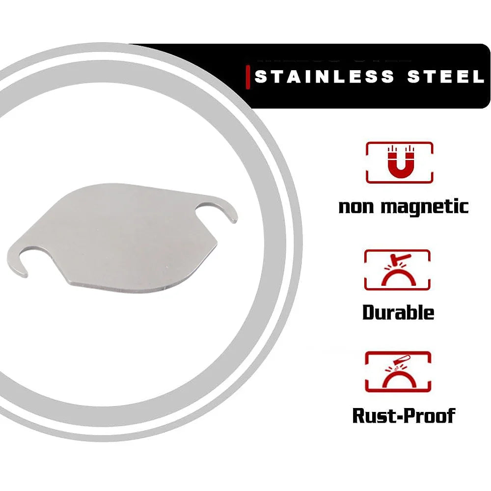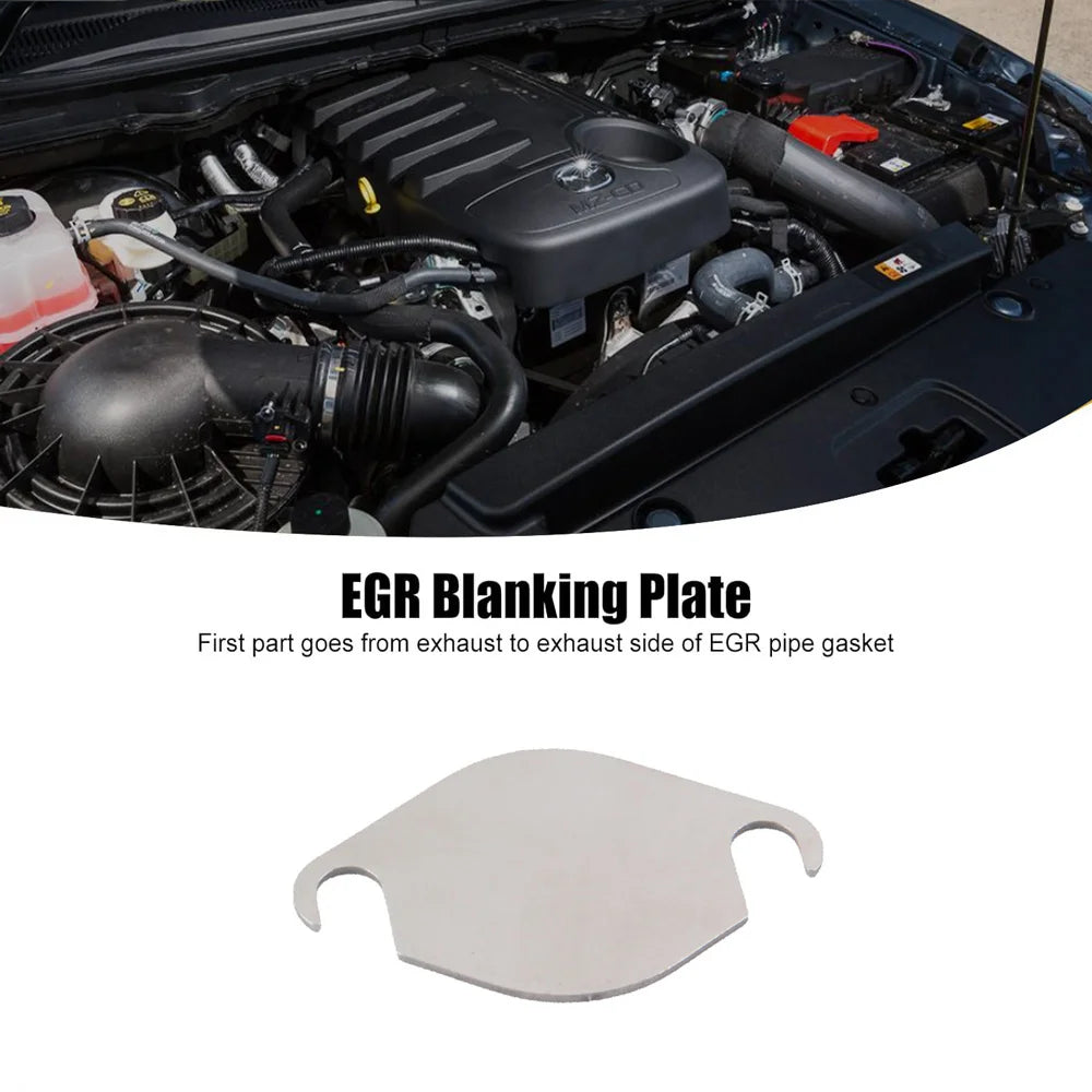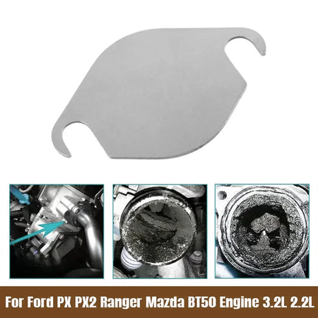Плоча за запушване на клапан Ford Ranger PX2 за 3.2L/2.2L, Неръждаема стомана е прецизно проектирана плоча за запушване от неръждаема стомана, предназначена за Ford Ranger PX2 (и Mazda BT-50), оборудвани с двигатели 3.2L и 2.2L. Тази плоча за запушване на клапан блокира пътя на EGR, помагайки за намаляване на натрупването на сажди, насърчаваща по-чист поток на въздуха за влизане и поддържаща по-стабилна работа на двигателя при различни условия на шофиране.