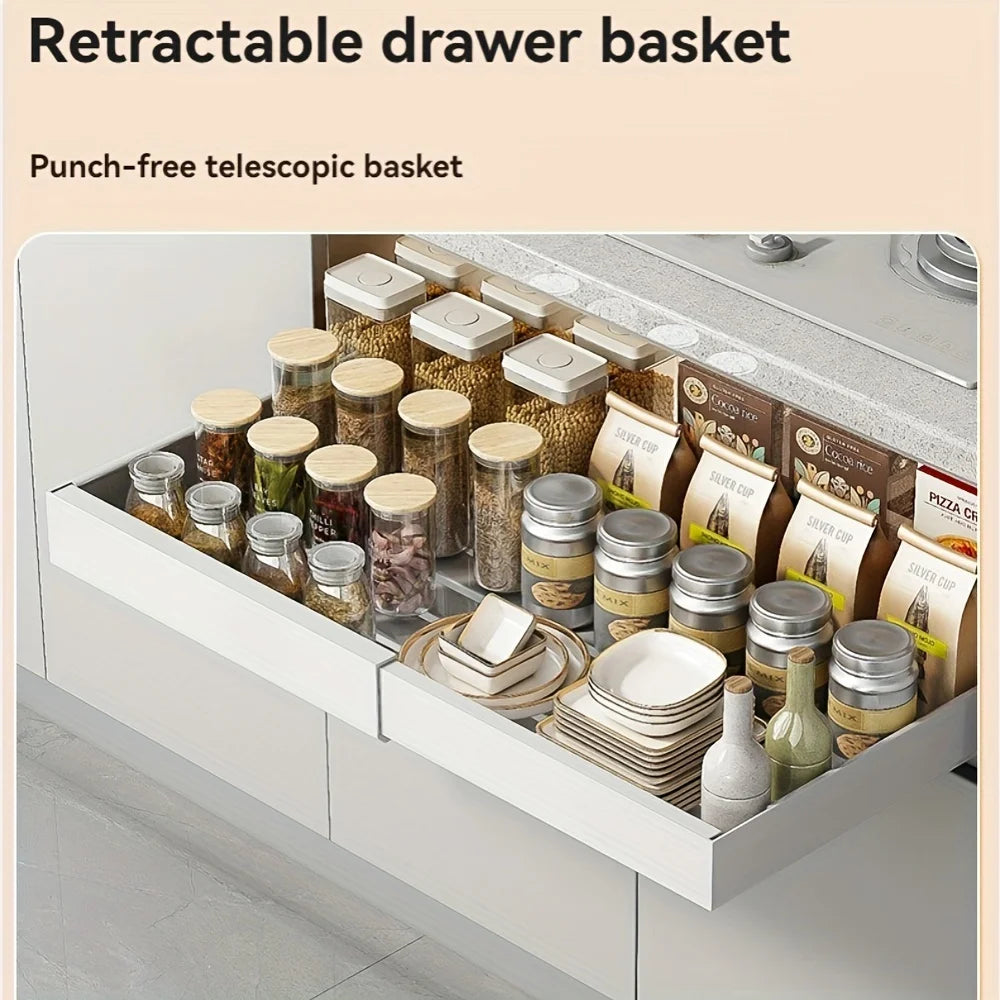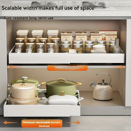 Открийте разширяемия кухненски рафт от LISM, универсално решение за спестяване на пространство за натоварени кухни. Проектиран за подова употреба с мощни лепящи ленти, той предлага сигурно съхранение без пробиване. Рафтовете се разширяват до над пет нива, предоставяйки ви изобилие от пространство за подправки, буркани, чаши, капаци и още, докато поддържат плотовете чисти. Чистият бял и черен двуцветен завършек пасва на съвременните стилове на кухнята, а здравият му дизайн ви помага да организирате ежедневните основни неща в лесен достъп. Химикалите с висока загриженост не са налични, което прави това практично и безопасно допълнение към вашата кухня.