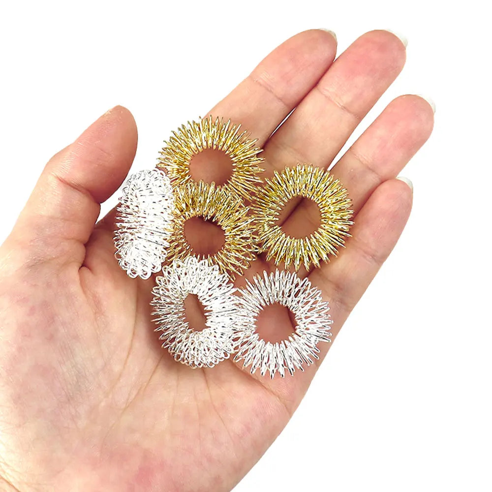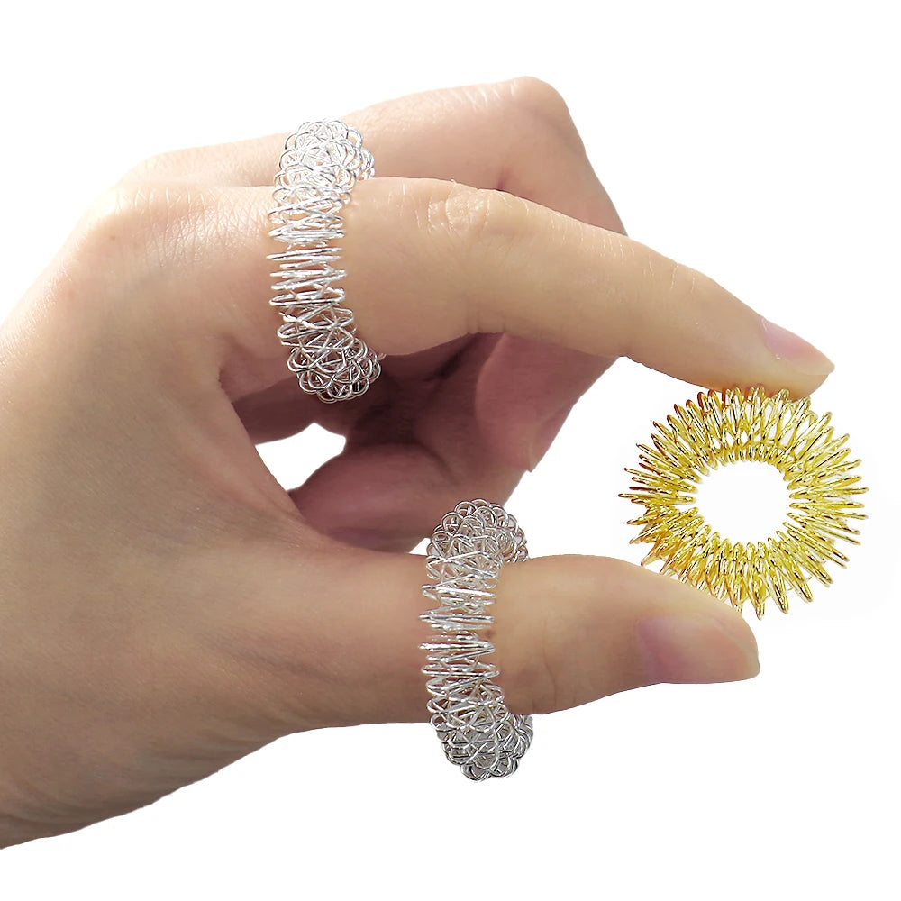 Пръстен за акупунктура Sujok от неръждаема стомана за масаж на ръцете предлага ефективен, прост начин за поддържане на здравето на пръстите и ежедневния комфорт. Този компактен пръстен използва малки триъгълни точки, за да приложи прецизен акупресурен натиск върху ставите на пръстите и акупунктурните точки, осигурявайки облекчение от умора на пръстите, подобрявайки концентрацията и насърчавайки общото благосъстояние — без проникване в кожата. Изработен от издръжлива неръждаема стомана и проектиран да се носи като пръстен, той е удобен за използване у дома, на работа или по време на тренировъчни сесии за музиканти и занаятчии. Произведен в континентален Китай, предлага се в сребрист/златист вариант и е регулируем, за да пасне удобно на повечето пръсти.