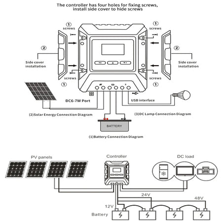 - Автоматичното превключване между 12/24/48V опростява настройката—просто свържете и оставете контролера да идентифицира вашата система.