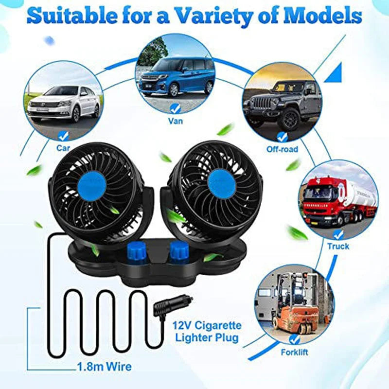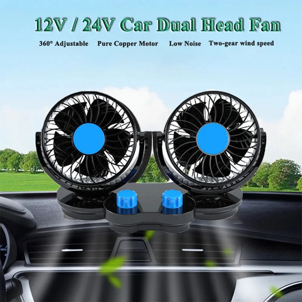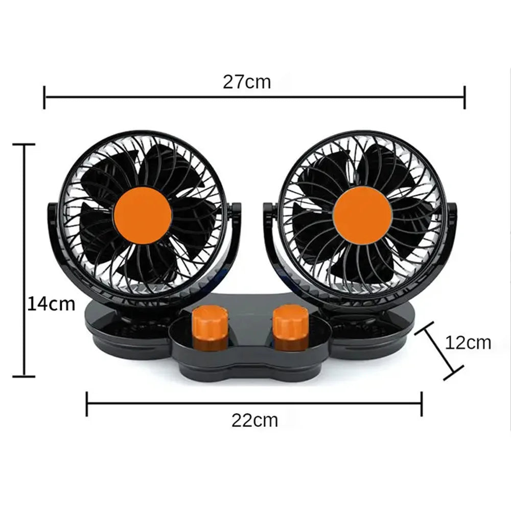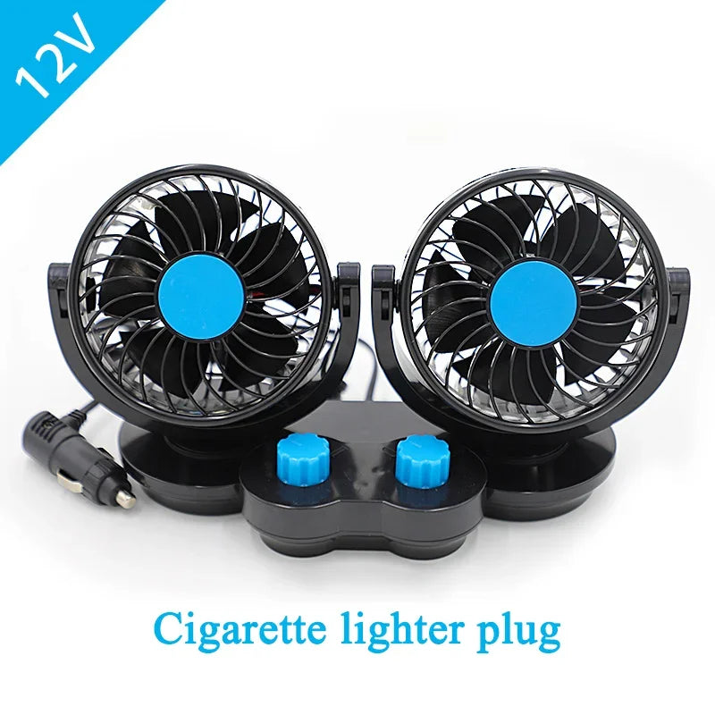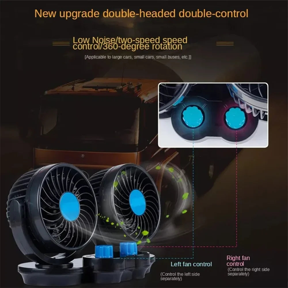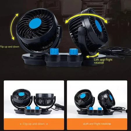 12V 24V Автомобилен вентилатор с двойни глави, 360 градуса регулируем, нисък шум
