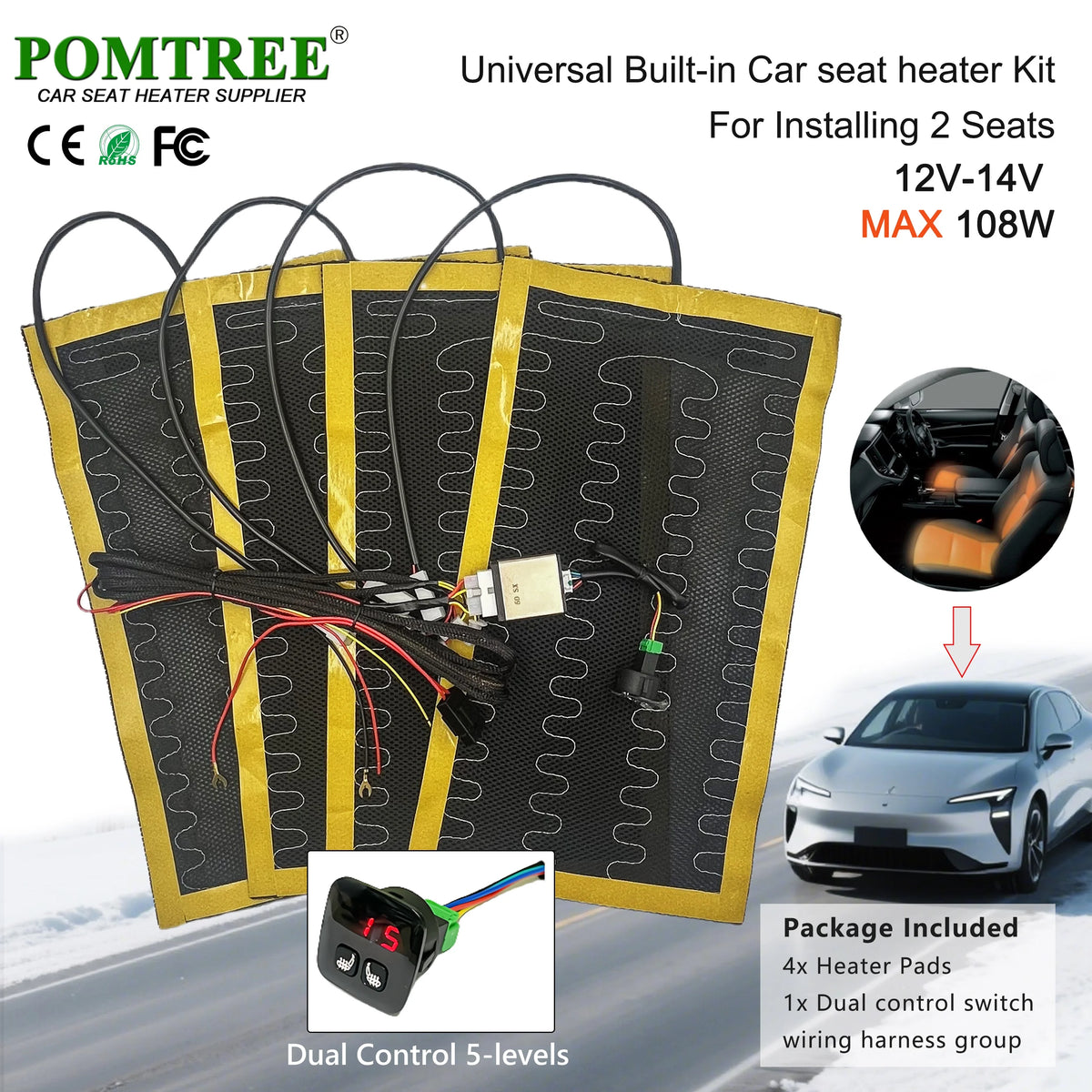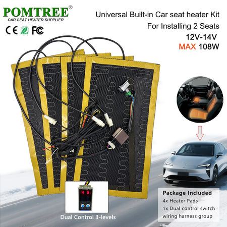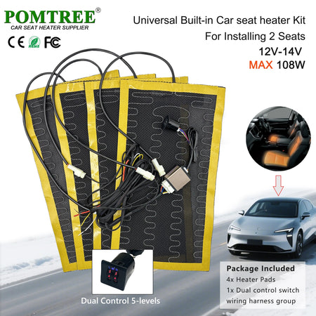 Дръжте всяко пътуване топло и удобно с комплекта за отопление на автомобилни седалки 12V Universal за 2 седалки. Този компактен комплект осигурява до 108W успокояваща топлина чрез четири интегрирани отоплителни подложки, проектирани да пасват на повечето седалки в автомобили, SUV, камиони, каравани и лодки. Универсалният дизайн поддържа предни и задни седалки с кофа или пейка и включва DC 12V контролен превключвател за двойни седалки за лесно регулиране на температурата в движение. Създадени да работят с кожени или текстилни седалки, тези подложки осигуряват надеждна топлина по време на есенни и зимни шофирания.