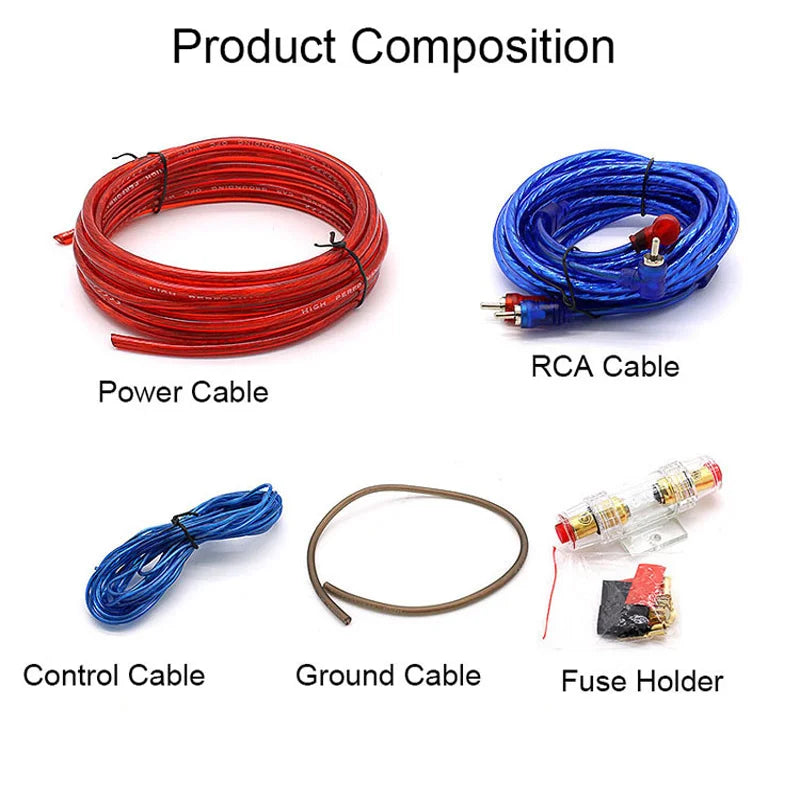 Комплект за свързване на автомобилна аудиосистема 1500W 10GA кабел за субуфер с 60A предпазител