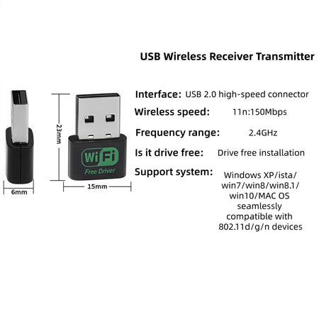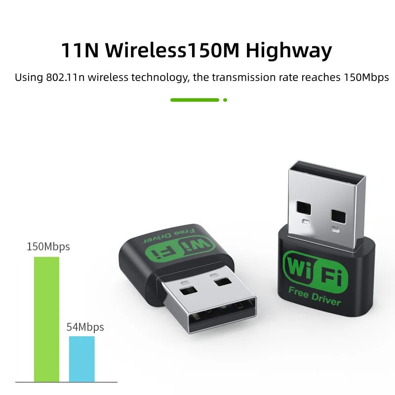 150Mbps USB WiFi адаптер 2.4GHz за Windows 7-10, Mac OS