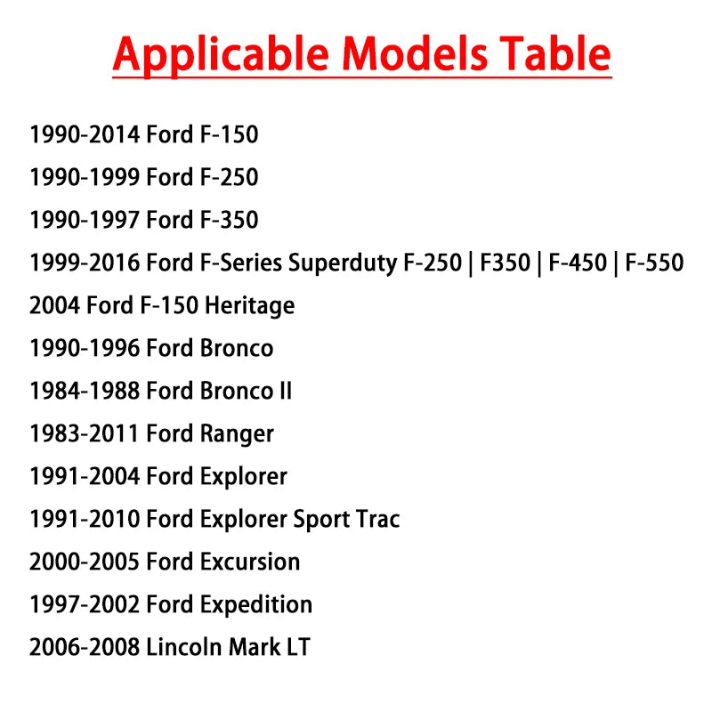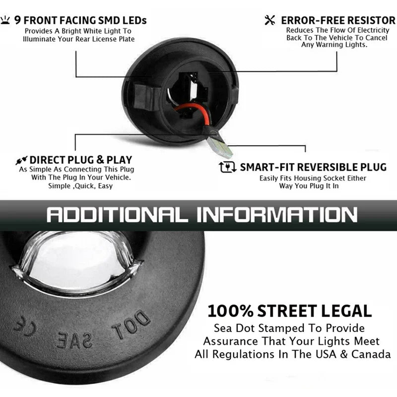 Актуализирайте вашия Ford F-150 с надеждна, ярка LED светлина за номер на регистрация, проектирана за лесен монтаж с включване и работа. Тази единица без грешки в CANBUS елиминира предупреждаващите съобщения на таблото, докато осигурява ясна, бяла светлина за задната табела. Изработена за издръжливост с IP65 водоустойчива защита и дълъг живот от 30,000 часа, тя остава ярка в дъжд, кал и при всякакви метеорологични условия. Светлината използва висококачествени LED и материали ABS/PC, и разполага с преден прозрачен обектив, който разпространява светлината широко за максимална видимост на табелата. Работи на 12V с компактен разход от 3W, това е просто директно заместване, което не изисква модификации. Обърнете внимание, че съвместимостта трябва да бъде потвърдена чрез проверка на годината и модела на автомобила, за да се осигури перфектно прилягане.