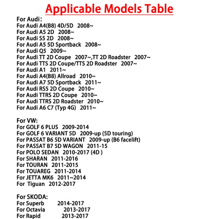 - Съвместимост: Audi A1/A4/A5/A7/Q5/S5