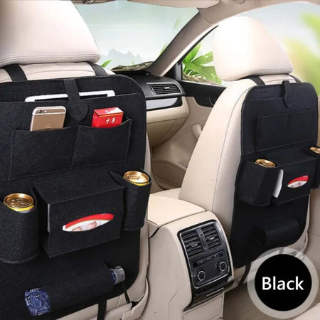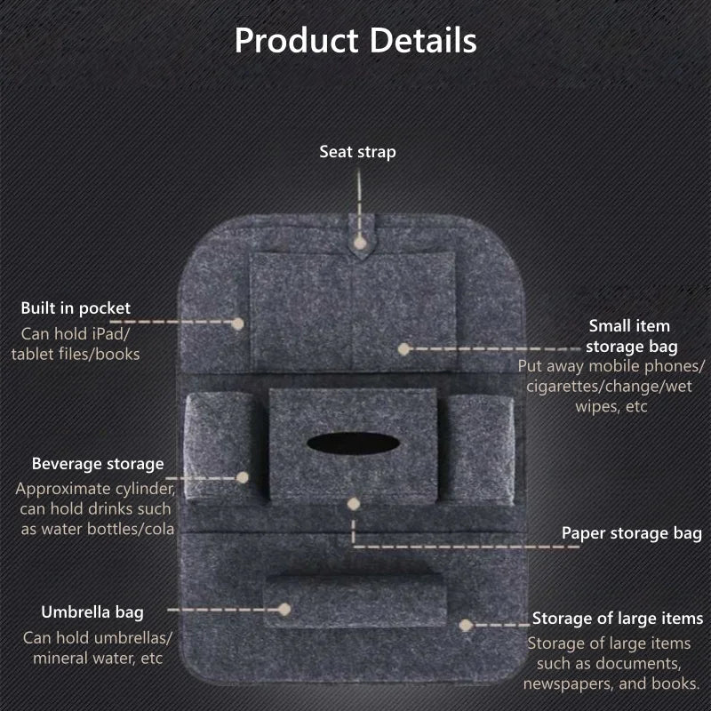 Органайзер за задната седалка на кола с 7 джоба, вълнено филцово покритие, поднос