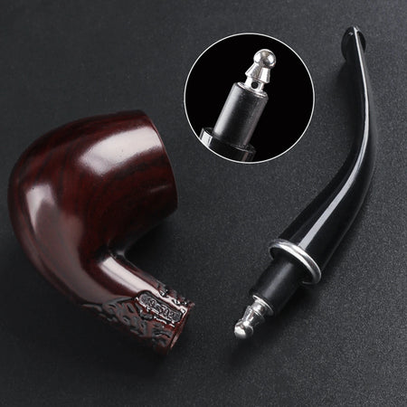 Тютюнева лула от масивно дърво с издълбан орнамент и мелачка за билки