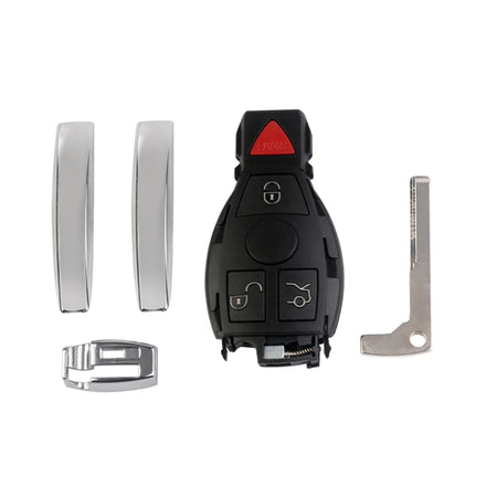 Актуализирайте или заменете с надеждно дистанционно ключе на Mercedes-Benz с 3/4 бутона за W203-W222, с ABS медна обвивка. Тази смяна на ключовата кутия е проектирана да възстанови външния вид и усещането на вашия ключ за Mercedes, като се справя с износени или счупени бутони с здрава, стилна обвивка. Продуктът е само ключовата кутия и некръгъл ключ, а не пълната електронна част. Необходимо е да се изреже ключ от местен ключар/дилър или да се смени острието с оригиналното, за да се направи работещ ключ.