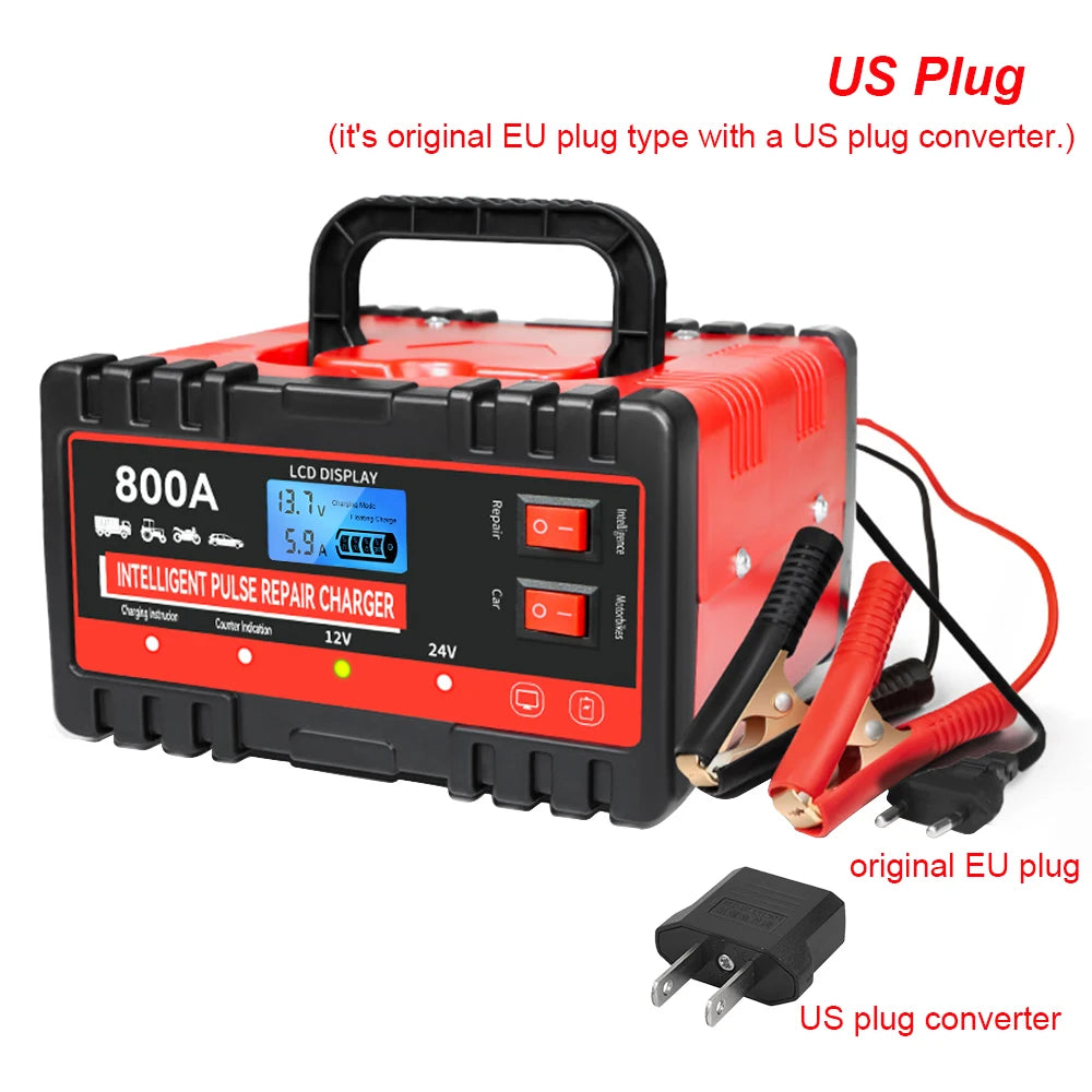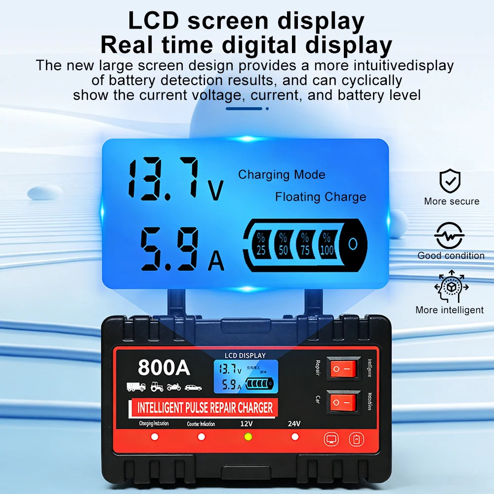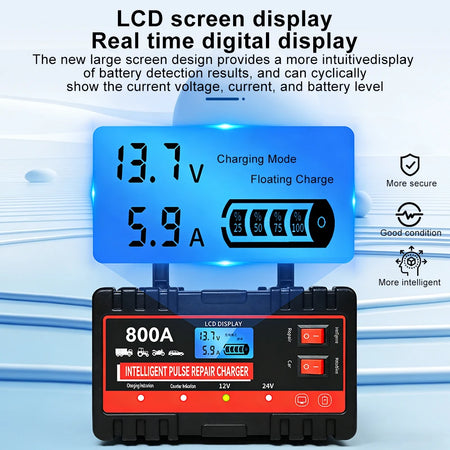 220W Автомобилен зарядно устройство за акумулатори 12V 24V с интелигентен пулсов ремонт, превключвател
