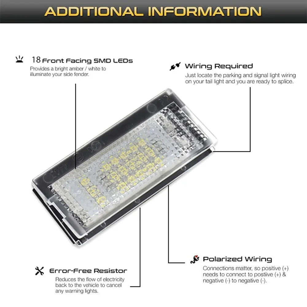Актуализирайте вашето BMW E46 3 Серия с този комплект LED светлини за номер на кола. Този комплект от 2 броя, съвместим с 12V CANBUS, осигурява ярка, равномерно разпределена светлина за номера на колата, подобрявайки видимостта и стила, докато помага за избягване на предупредителни светлини на таблото в съвременните превозни средства. Светлините са изработени от издръжлив PC материал и са сертифицирани по CE, с надеждна двугодишна гаранция за купувачите от ЕС.