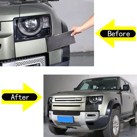 - Мигновено подобрение: Придава стилен, висококачествен въглероден вид на фаровете на вашия Defender за по-спортен, персонализиран външен вид.