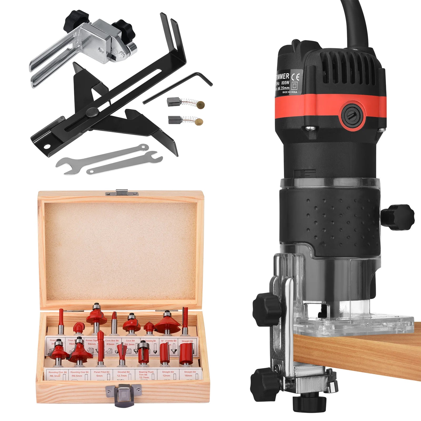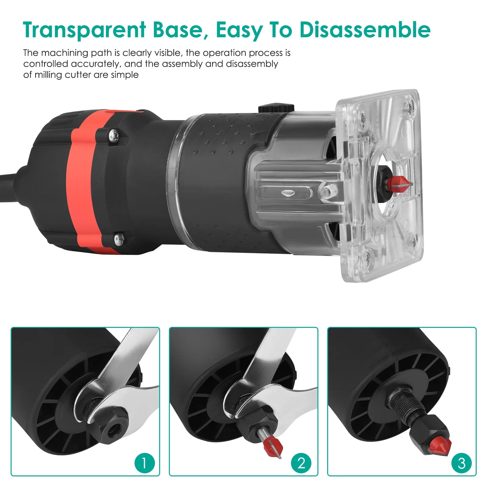 С диаметър на подрязване 6.35 мм и комплект от 15 фрези, съхранявани в дървена кутия, можете да се справите с широк спектър от задачи за подрязване, шлайфане и гравиране с една универсална машина. Прозрачната основа ви позволява да наблюдавате обработващия път в реално време, а финият стоманен патронник, външният отвор за въглеродна четка и противохлъзгащата дръжка осигуряват прецизен контрол и удобна работа.