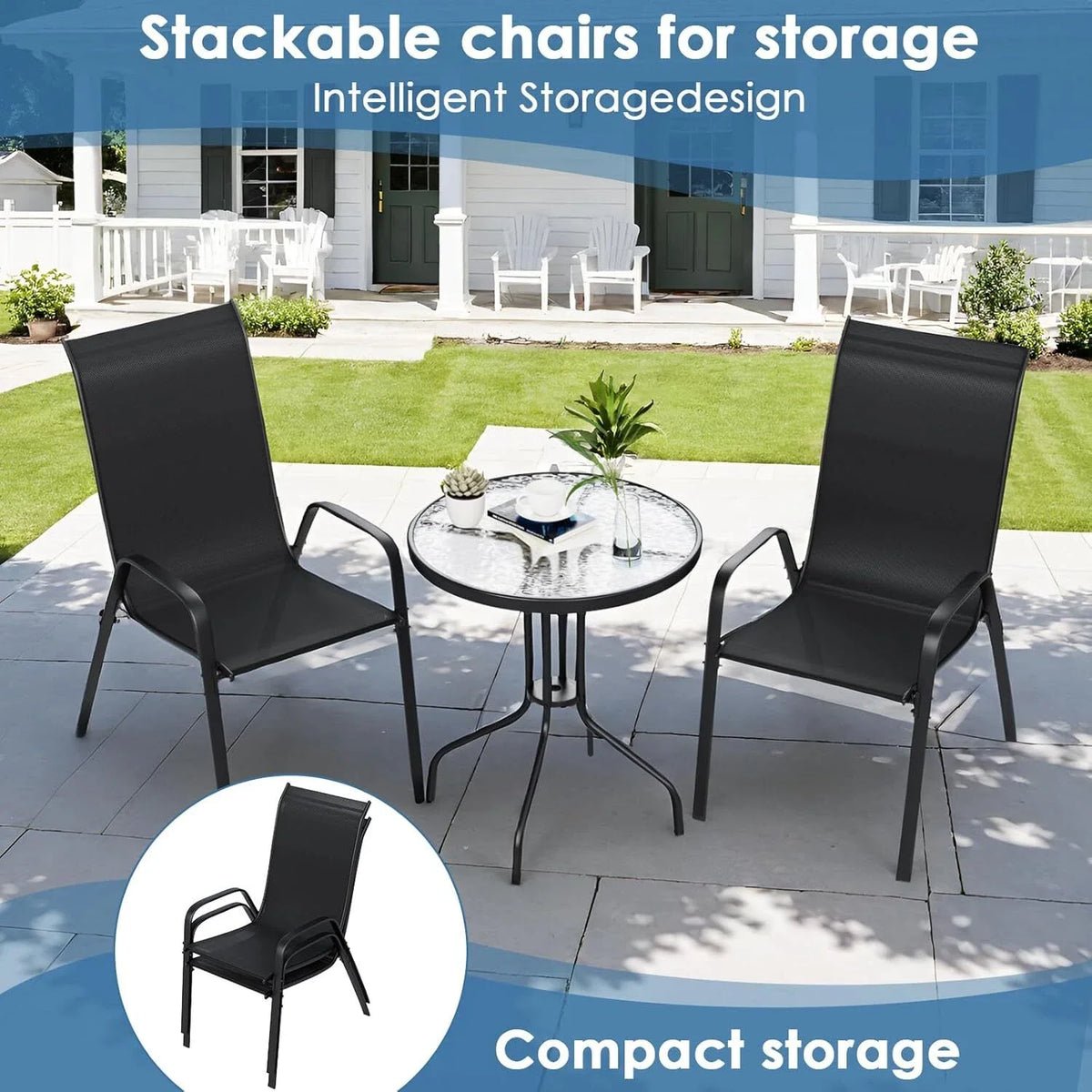 3 части комплект за балкон с кръгла стъклена маса и 2 стекаеми стола
