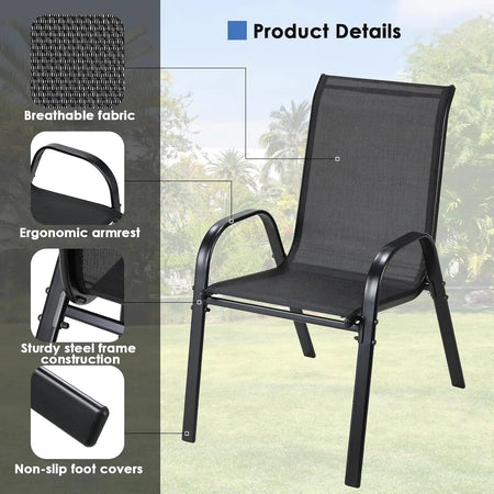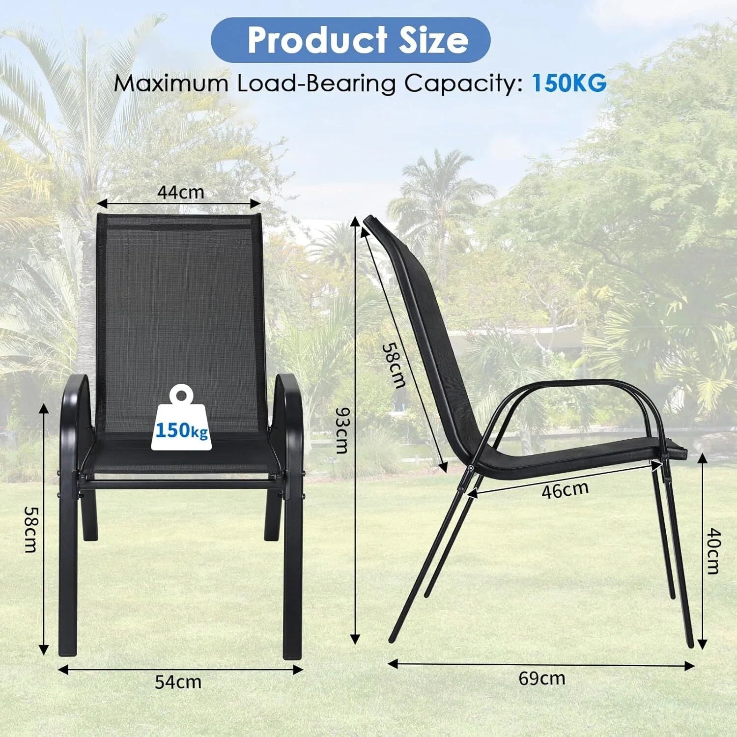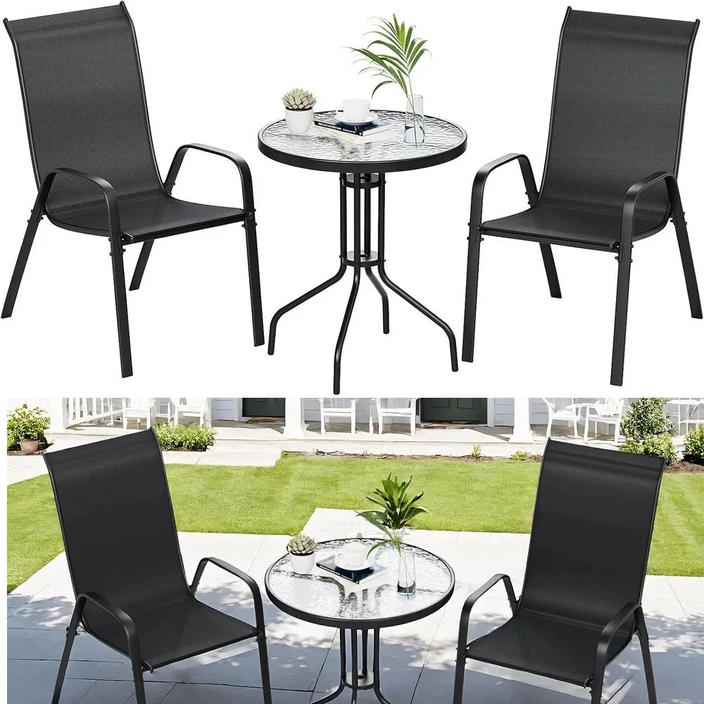 Сглобяването е лесно с ясни инструкции, а компактният размер на комплекта го прави идеален за малки открити пространства. Черният цвят и европейският стил се съчетават добре с разнообразен интериор — от модерен до традиционен — позволявайки ви да се насладите на хранене и отдих на открито с комфорт.