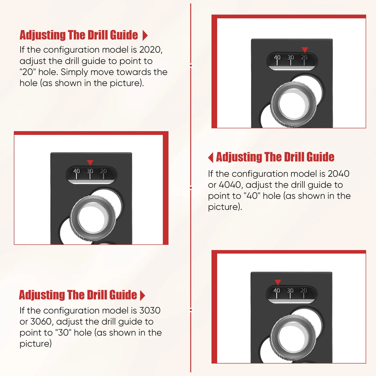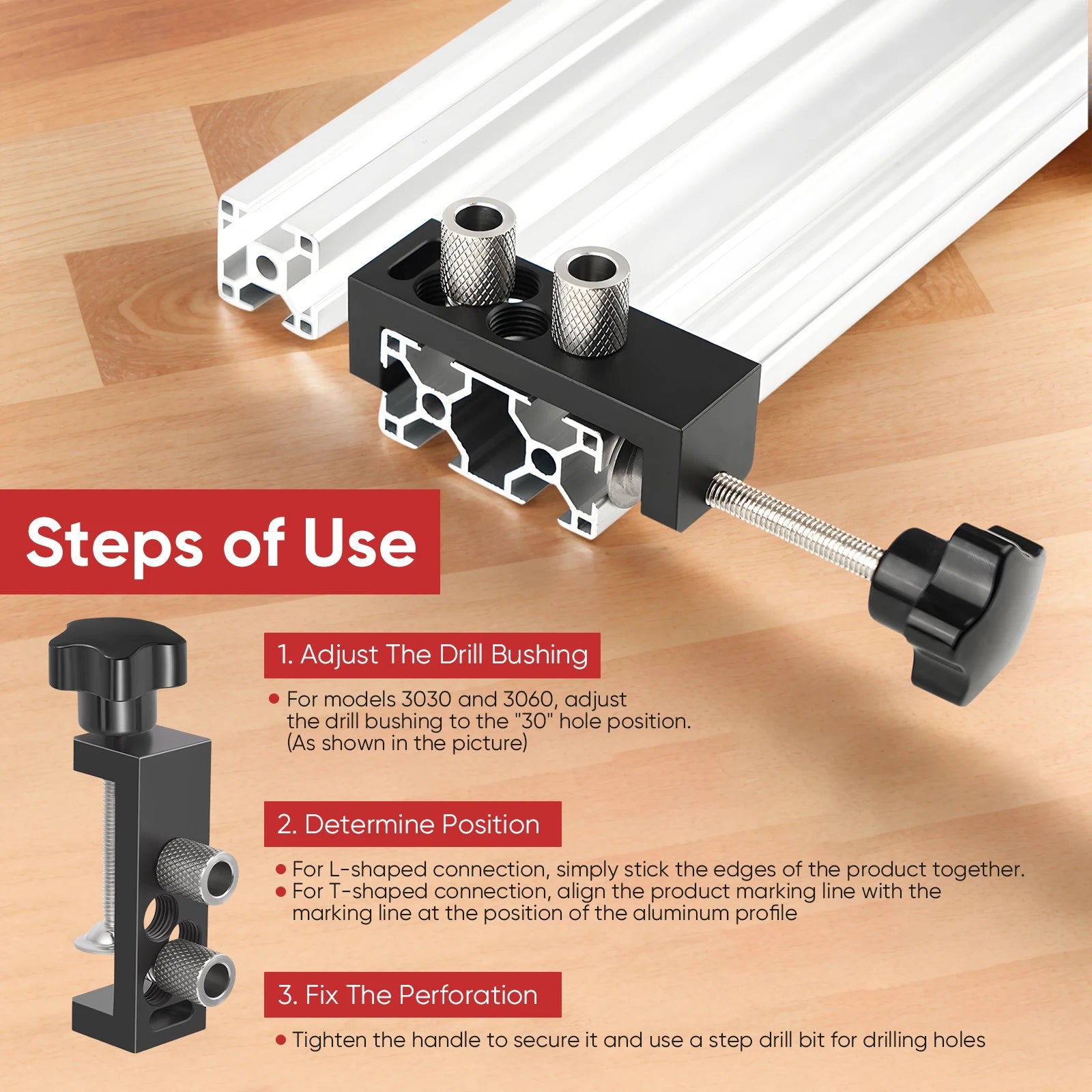 - Функционалност 2 в 1: точни потънали отвори с поддръжка на подравняване за профили 2020/2040/3030/3060/4040.