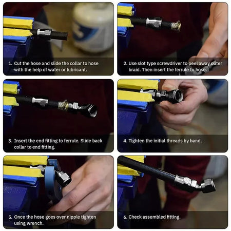 - Максимизирайте уплътнението и издръжливостта: Дизайнът с двойно захващане заключва ядрото от PTFE и външната оплетка отделно за надеждно свързване дори при вибрации и колебания на налягането.