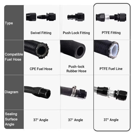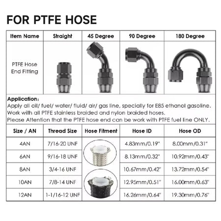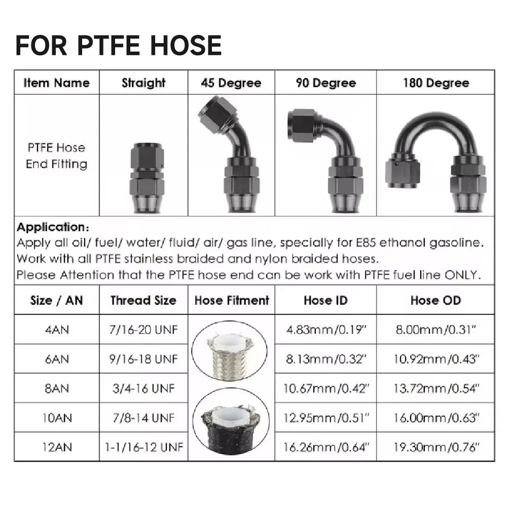 - Използвайте с съвместими течности: Идеален за масла, горива, вода, въздух, газови линии и E85 етанолна бензин, разширявайки вашите проекти за конверсия или ъпгрейд.