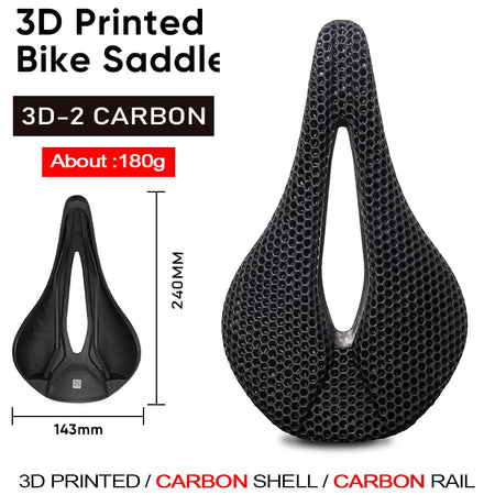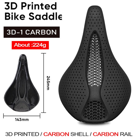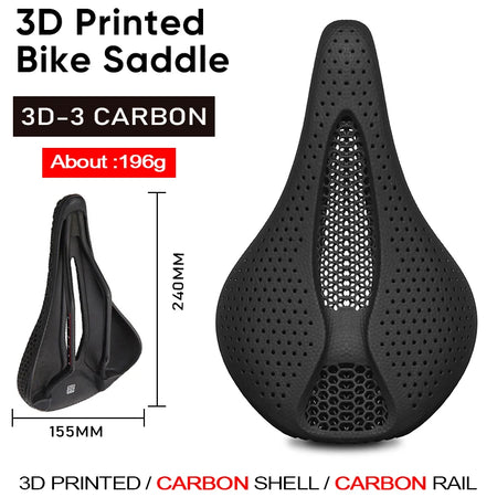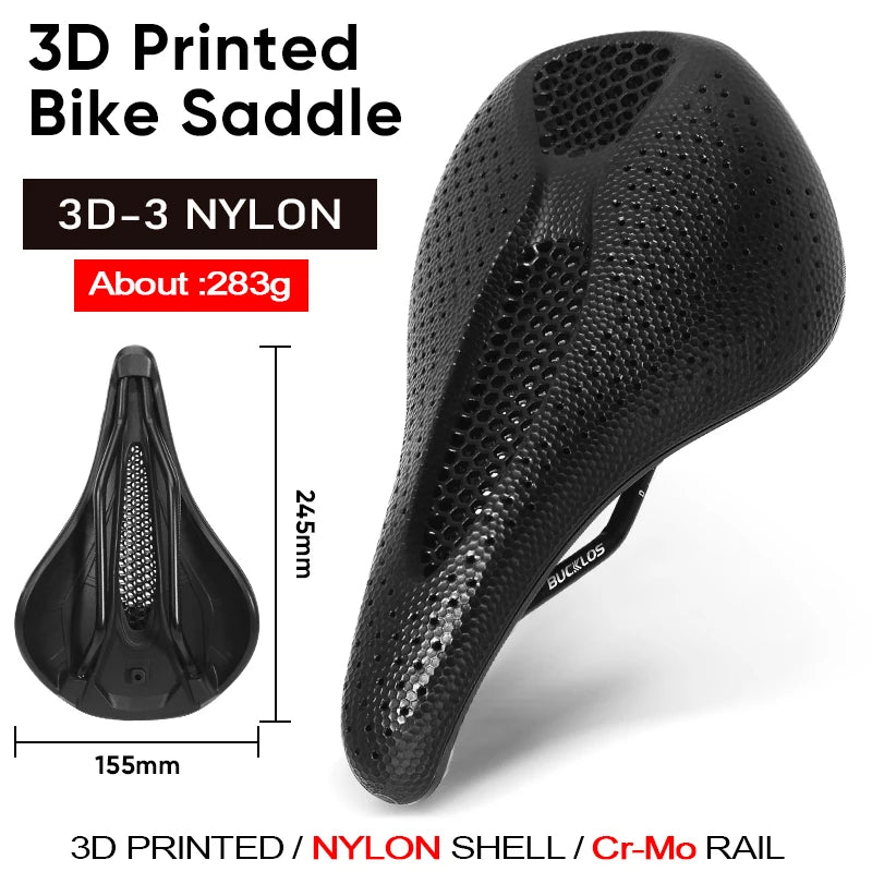 Bucklos Ultralight 3D Printed Bicycle Saddle, Carbon Fiber 143mm/155mm