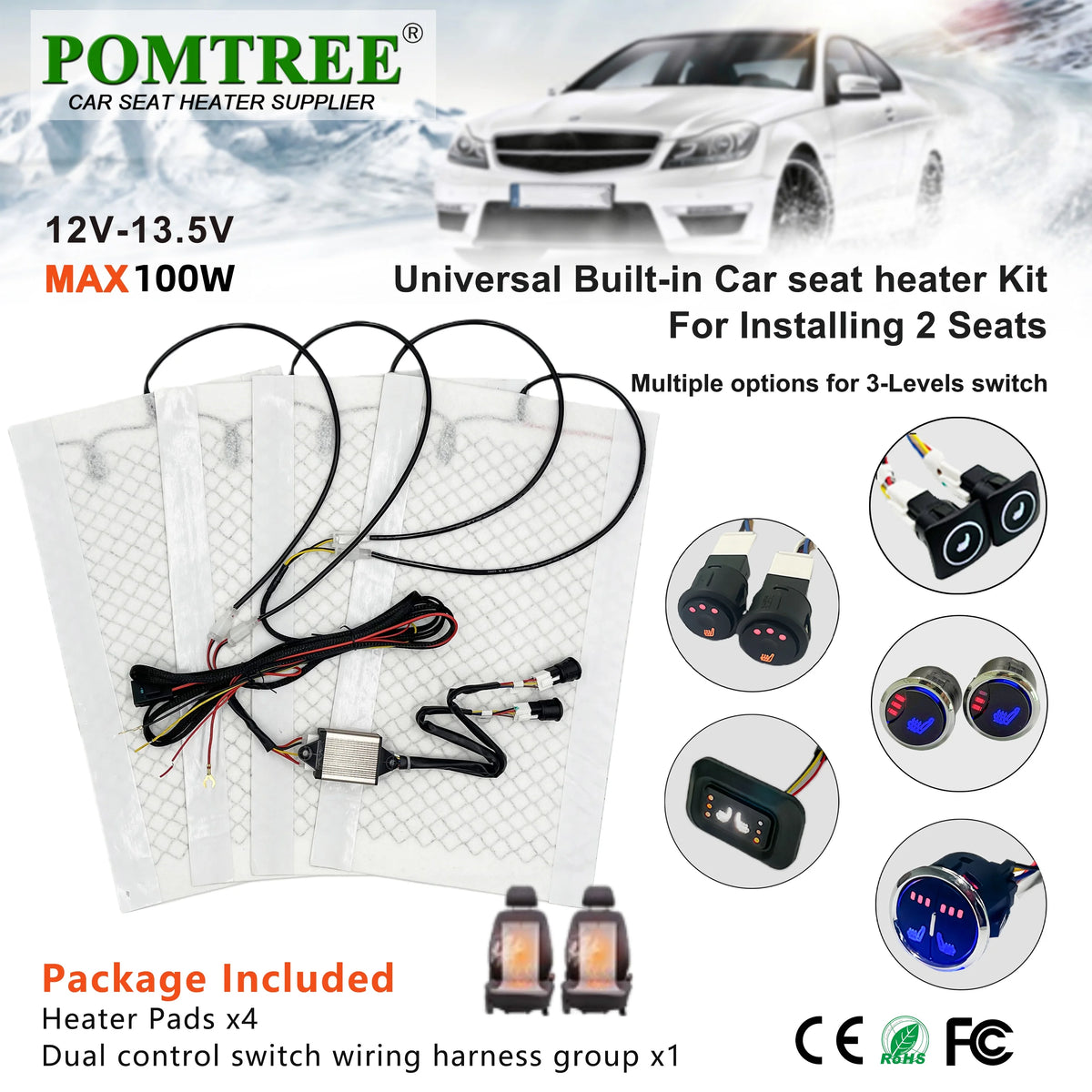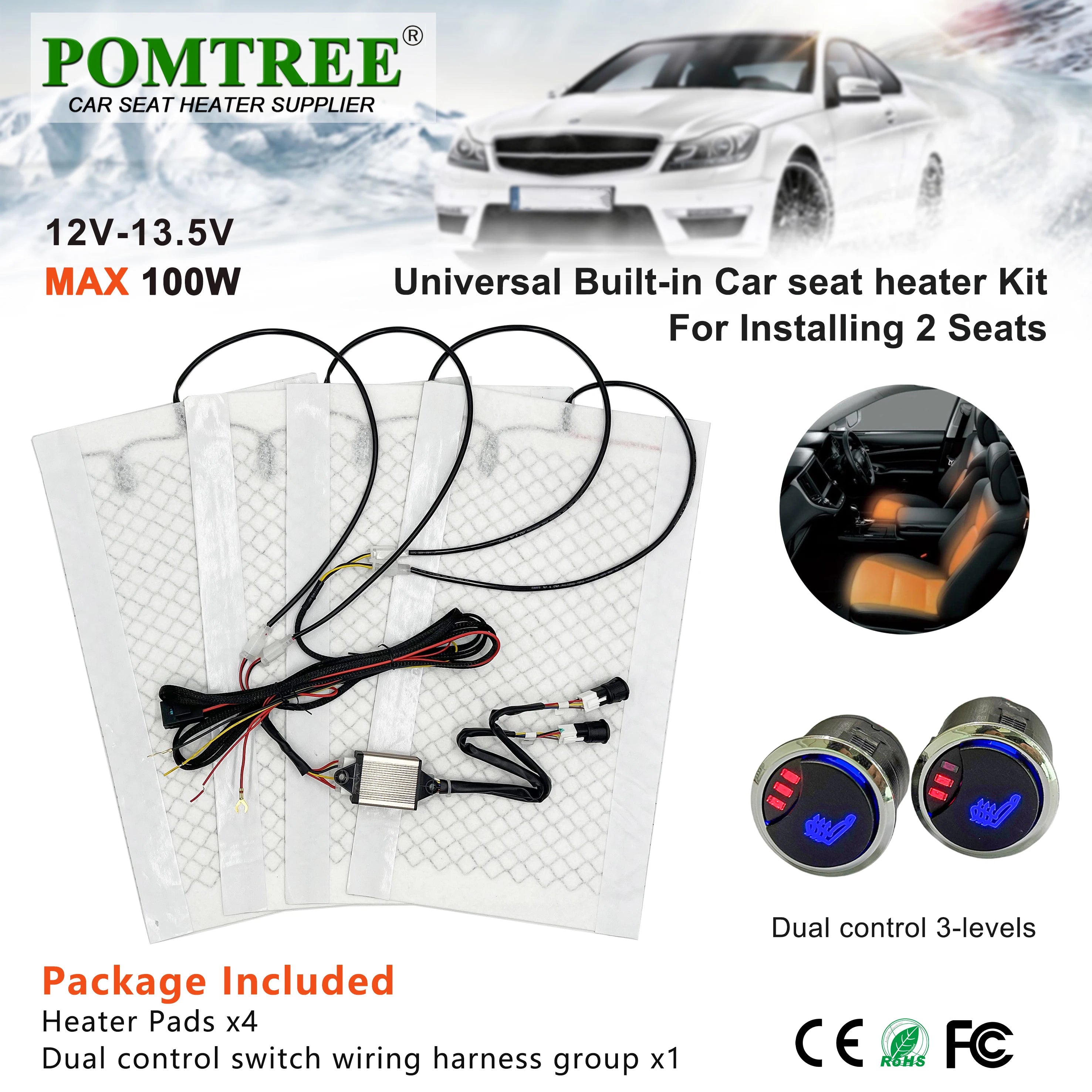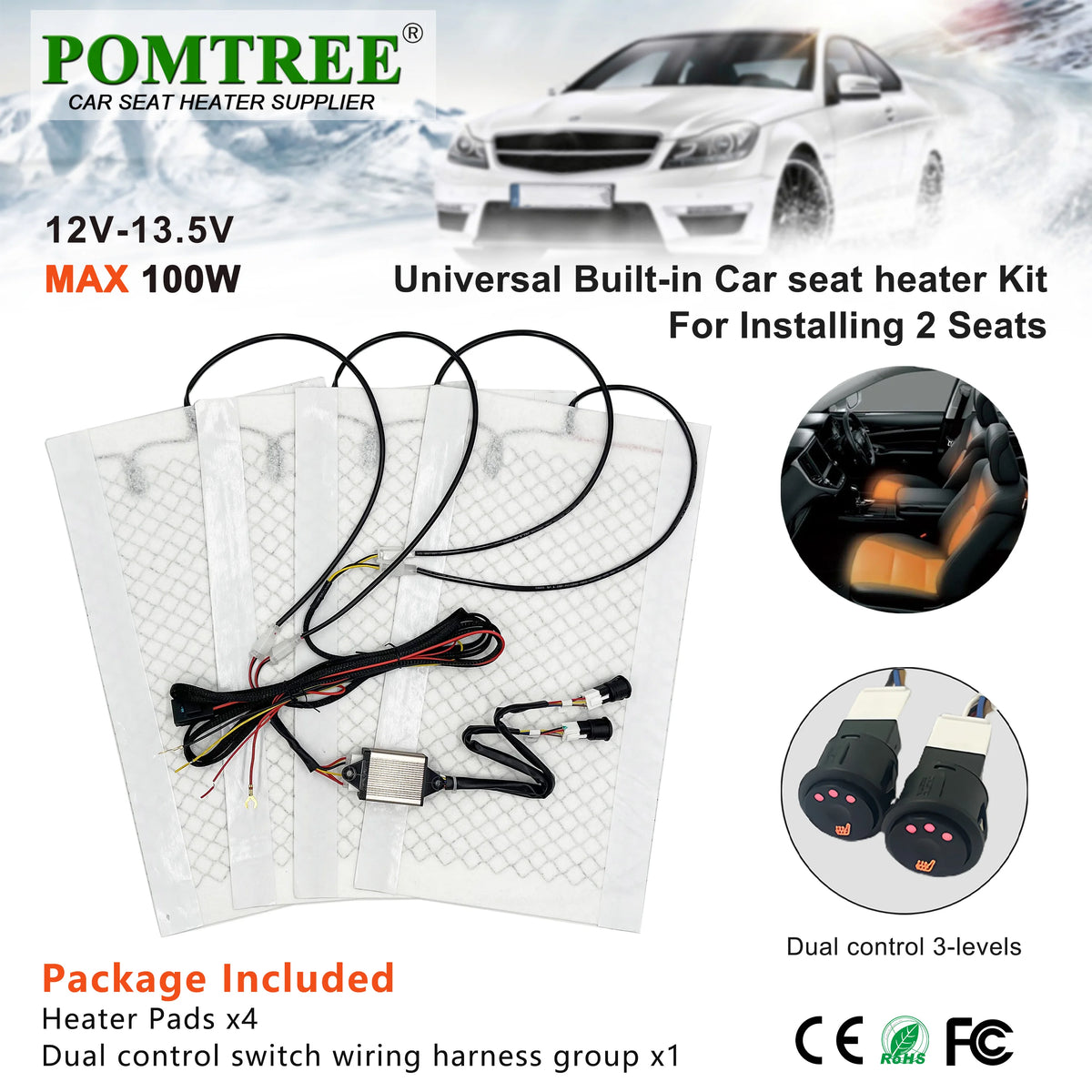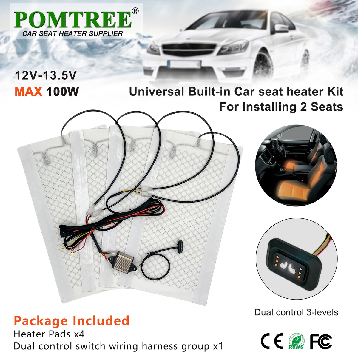 Комплект отопление за автомобилни седалки за две седалки с нагревателни подложки от въглеродни влакна, 100W