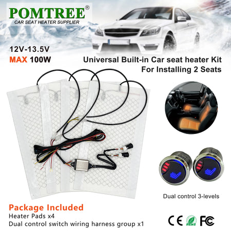 Останете уютни по време на всяко пътуване с комплекта за отопление на автомобилни седалки за две седалки, който включва отоплителни подложки от въглеродни влакна. Това универсално 12V DC решение за отопление е проектирано за лесен монтаж в повечето превозни средства и използва вградени отоплителни подложки от въглеродни влакна, за да осигури топла, равномерна топлина на двете седалки. Комплектът е подходящ за предни седалки с кофа и задни пейки и работи с автомобили, SUV, камиони, каравани и дори лодки. Всяка отоплителна подложка е с размери 48 см на 27 см (19" x 10.63"), а системата осигурява до 100W на комплект за бързо затопляне. Двоен контролен превключвател за седалките DC 12V ви позволява да регулирате топлината за две седалки независимо, с три нива на температура, за да намерите перфектния комфорт. Всички електронни и механични устройства, апарати и машини, продавани от InterCyprus на държави от ЕС, са сертифицирани по CE и имат двугодишна гаранция. На intercyprus.com от 2002 г. — доверен за качество и надеждност.
