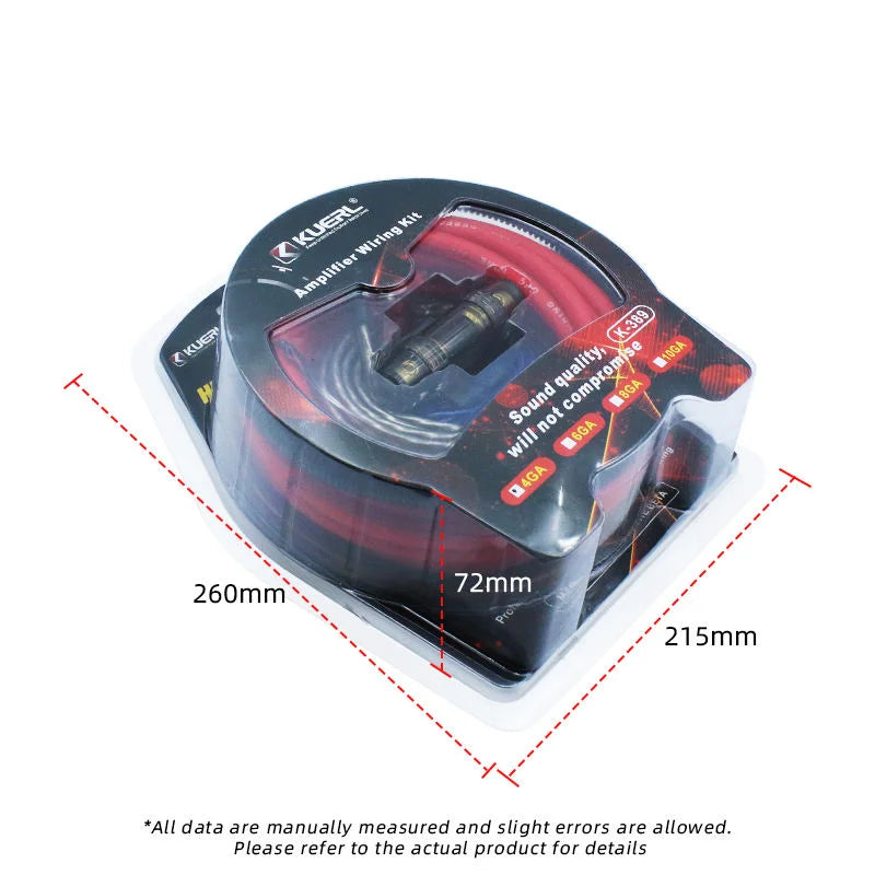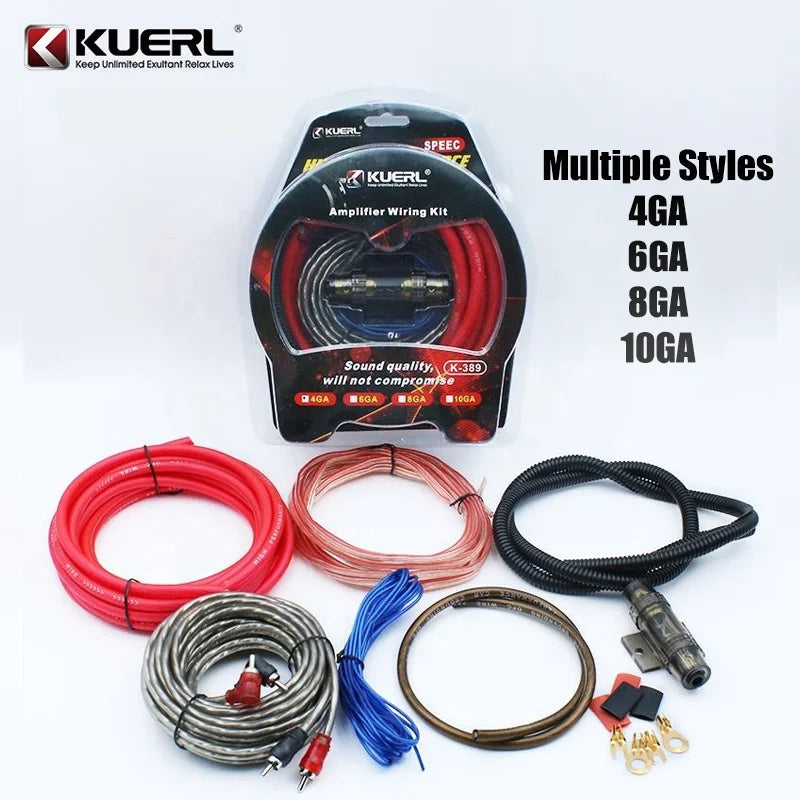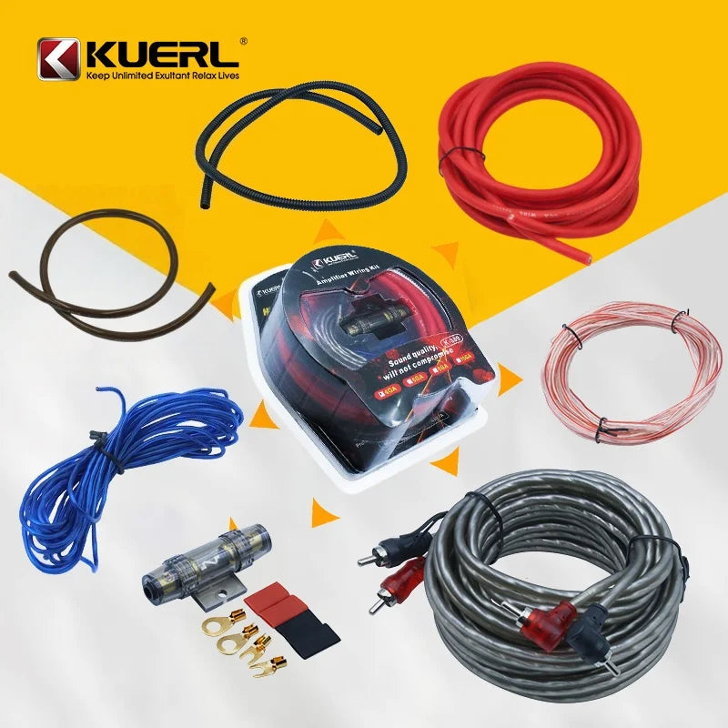 KUERL Комплект за свързване на автомобилен усилвател 10/8/6/4GA с 60A предпазител, медно покритие алуминий (K-389) предлага надеждно решение за захранване, готово за инсталиране за автомобилни аудиосистеми. Този комплект с висока проводимост е проектиран да минимизира спадовете на напрежение и да максимизира производителността на вашия усилвател. Кондукторът от медно покритие алуминий балансира достъпността с надеждна проводимост, докато 60A предпазителят защитава системата ви от пренапрежения и къси съединения. С универсалните размери 10/8/6/4 GA, той е идеален за инсталации с един или множество усилватели, помагайки ви да постигнете по-дълбок бас, по-ясни високи тонове и постоянна мощност на пътя. Създаден да устои на автомобилната среда, този комплект предлага прост и надежден ъпгрейд за фабрични или следпродажбени системи, произхождащи от континентален Китай.