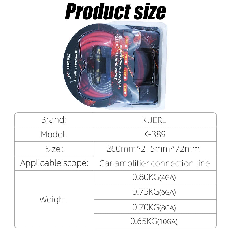 - Гъвкави проводници 10/8/6/4 gauge поддържат разнообразие от нужди от мощност на усилвателя и схеми на инсталация.
