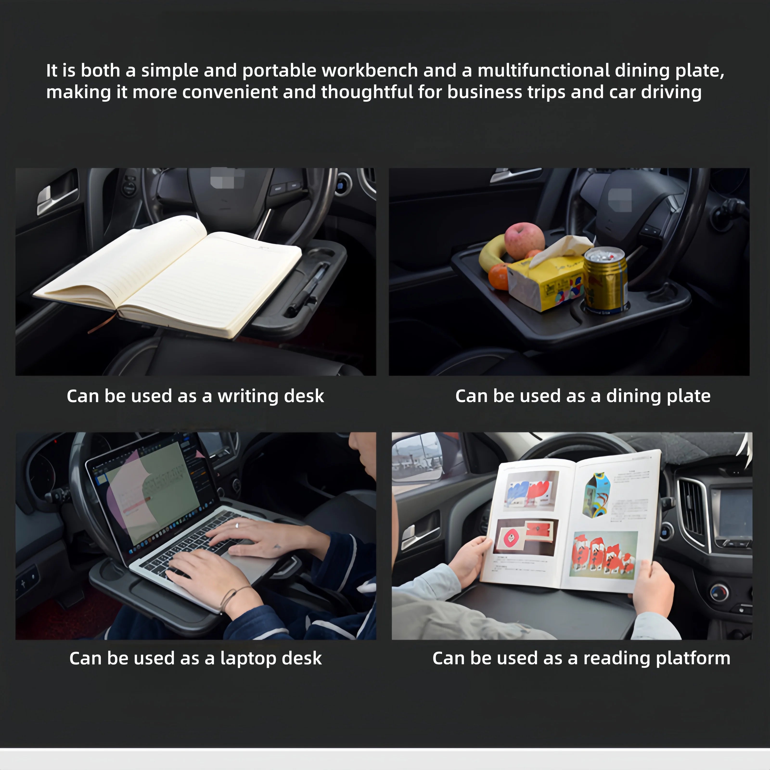 С универсална съвместимост и лек дизайн, той пасва на волани с диаметри от 35 до 43 см, което го прави подходящ за широк спектър от превозни средства, включително седани, SUV, MPV, спортни коли, кабриолети, комби, пикапи, Ute, автобуси и камиони. Неговото универсално използване не свършва в колата — той може да служи и като поднос за бюро у дома или в офиса. Вграденото ABS държач за напитки помага да се предотвратят разливи, докато работите, а интегрираната поставка за лаптоп осигурява стабилна повърхност за устройства в движение или на бюрото ви.