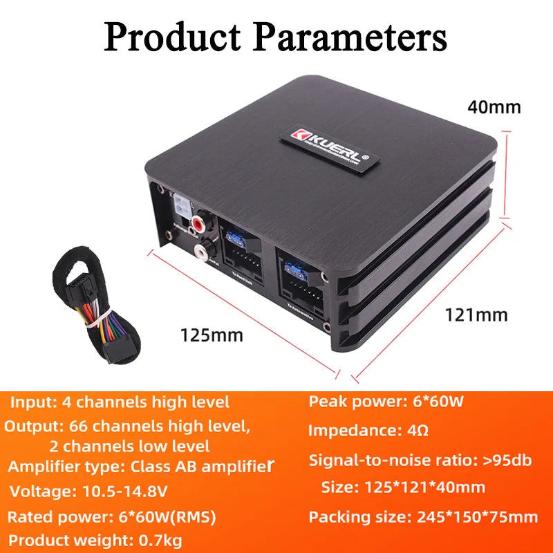 Подобрете аудиото на автомобила си с усилвателя ZUIDID Car Power Amplifier 6x60W с DSP, Android екран и без загуби звук. Този шестканален усилвател клас AB предлага мощен, чист звук и прецизно настройване за по-богато изживяване при слушане в автомобила. С вградения DSP можете да оформите звука според акустиката на кабината си без външни процесори, докато интегрираният Android екран предлага удобно управление и интуитивни настройки в движение. Изграден с издръжливо шаси от алуминиева сплав, този усилвател е проектиран да работи надеждно в изискващи условия на шофиране.