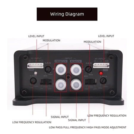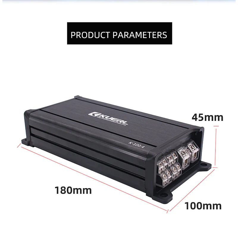 Повишете аудиото в колата си с усилвателя ZUIDID K1004 Class D Digital 4-Channel. Изграден с издръжливо шаси от алуминиеви сплави, този мощен усилвател е проектиран за стабилна работа и дълготрайна надеждност. Компактният, елегантен черен завършек се слива безпроблемно с повечето интериори на превозни средства, докато предлага сериозни възможности за подобряване на звука.