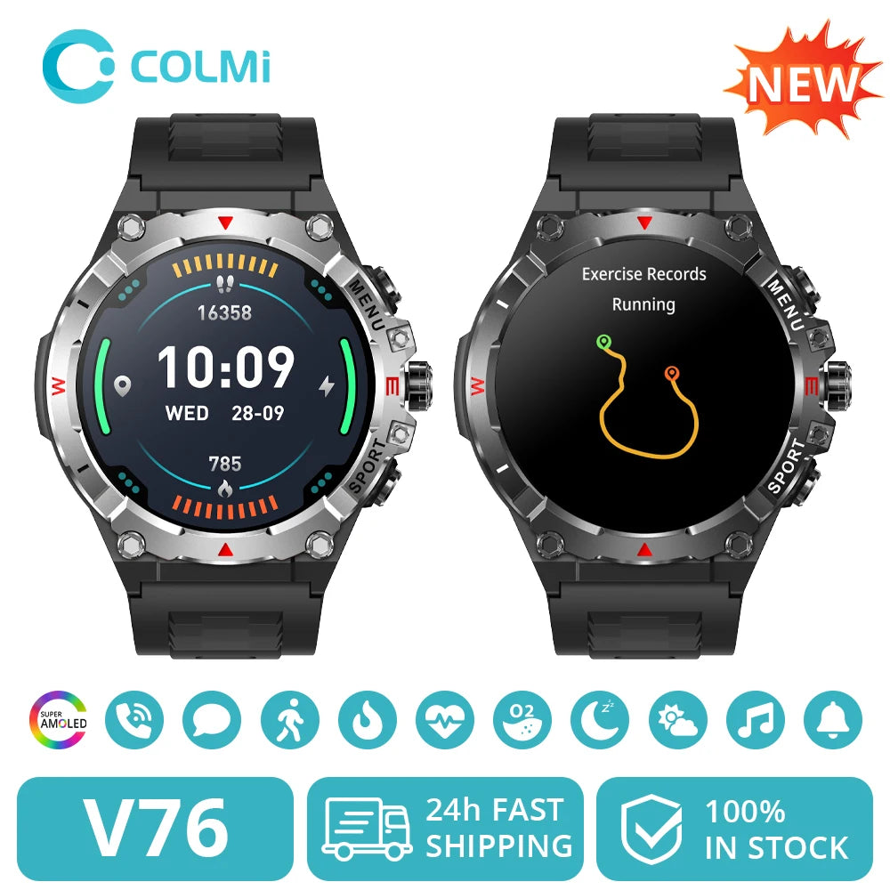 Запознайте се с COLMI V76 GPS Смартчасовник, универсално носимо устройство, създадено за приключения на открито и ежедневна грижа за здравето. Неговият брилянтен 1.43” AMOLED дисплей предлага ясни визуализации и живи цветове, докато мулти-констелационното позициониране (GPS, Beidou, GLONASS) ви следи точно, където и да отидете. Изработен с корпус от сплав и лека, удобна каишка, V76 съчетава здрава издръжливост с модерен стил, за да можете да го носите цял ден, всеки ден.
