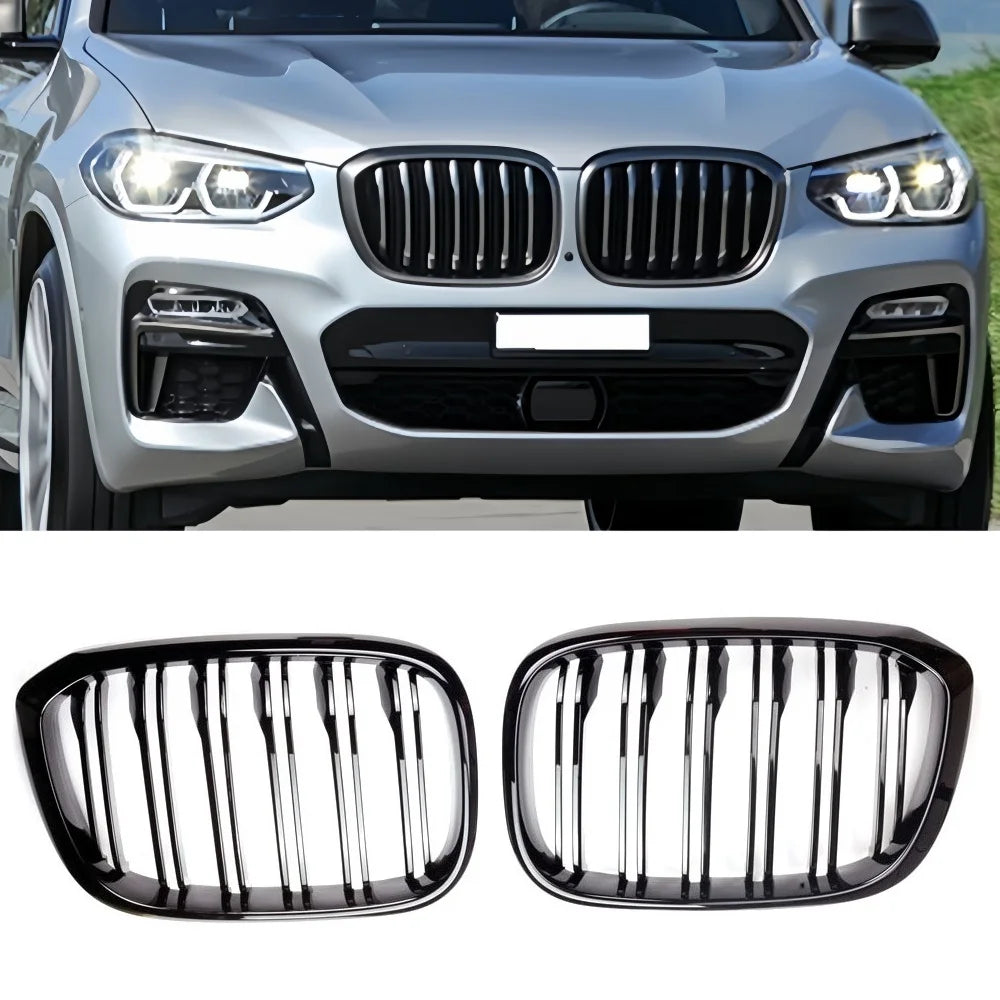 Подобрете вашия BMW X3 или X4 с предна решетка в стил Рейсинг, проектирана за платформата G01/G08 (2018–2021). Тази 100% нова, директно монтираща се решетка заменя фабричната решетка с смела двойна решетъчна конструкция, завършена в лъскаво черно. По-широките решетки създават по-агресивен, модерен преден край, като същевременно запазват чисто, OEM-подобно прилягане. Изработена от висококачествен ABS пластик, тя устоява на удари и атмосферни влияния, запазвайки своя остър вид след всяко пътуване.
