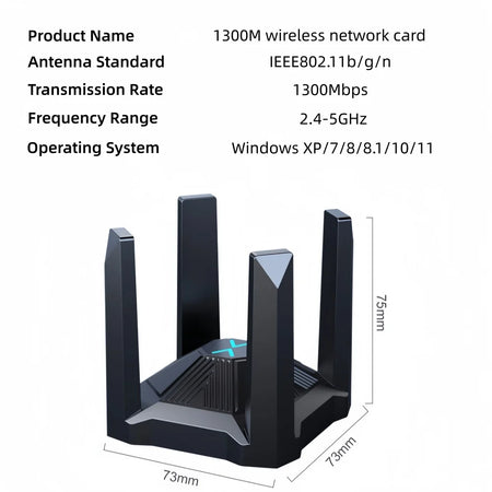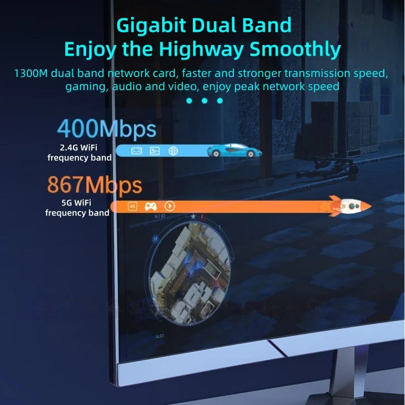 Безжична мрежова карта за електронни спортове 1300Mbps USB 3.0, 2.4GHz 5GHz за PC