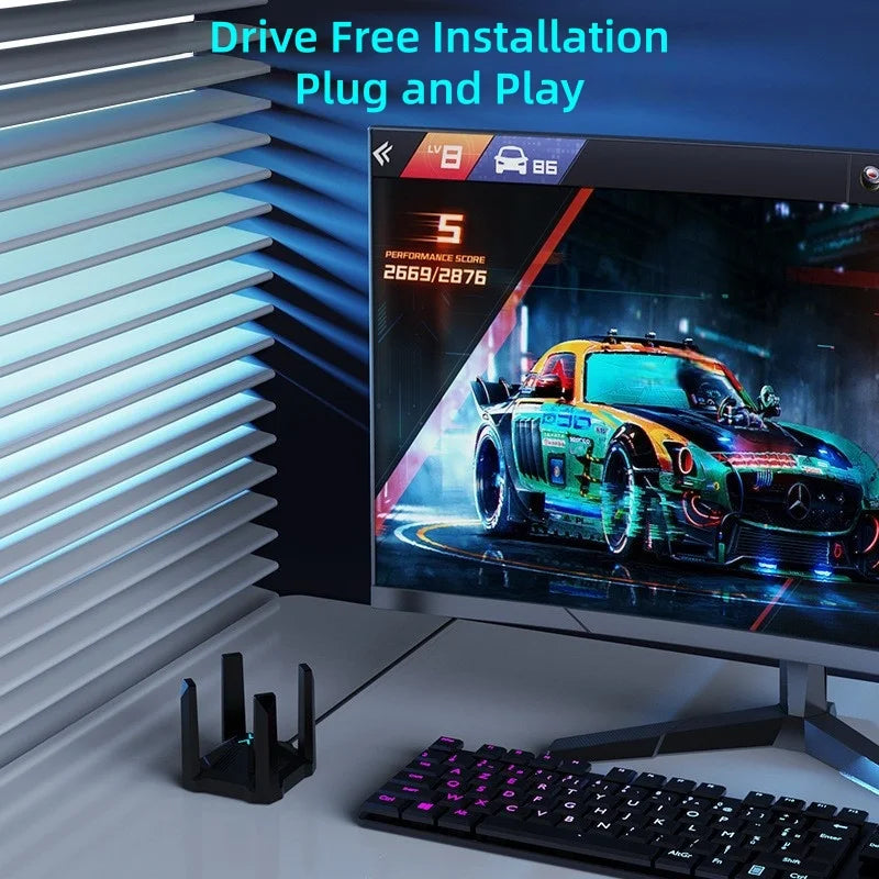 Проектирана за електронни спортове и конкурентно гейминг, тази карта приоритизира ниска латентност и надеждно приемане в претъпкани мрежи. Превключете на 5 GHz лентата, когато сигналът ви позволява, за да намалите смущенията и да поддържате стегнати времена на пинг по време на бързи мачове. Интерфейсът USB 3.0 осигурява бърз трансфер на данни, така че да не пропуснете кадри по време на актуализации или на живо стрийминг.