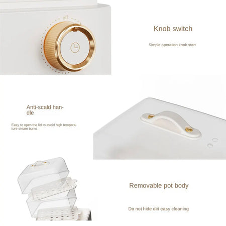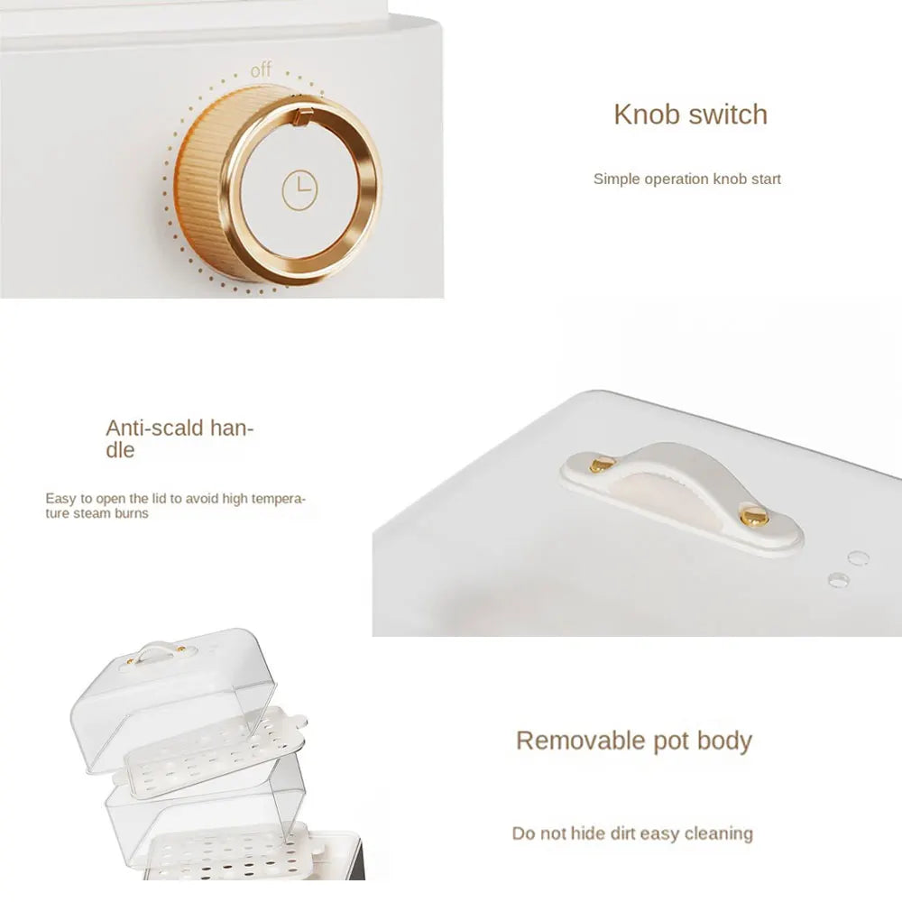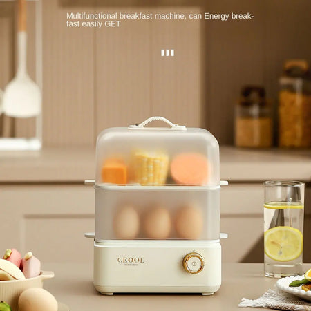 Многофункционален варач за яйца и параход за седем яйца 350W от BALASHOV е компактен, универсален кухненски помощник, проектиран да вари седем яйца или повече, докато същевременно служи като параход за бързо, здравословно ястие. Умната, безопасна пластмасова обвивка и гъвкавият дизайн ви позволяват да изберете конфигурация с един или два слоя, което улеснява адаптирането на готвенето към вашите нужди. С 360° пара за равномерно разпределение на топлината и удобен EU щепсел, този уред е идеален за европейски кухни, общежития или малки апартаменти. Простото настройване означава, че можете да започнете веднага: добавете вода с мерителната чаша, поставете яйцата или другите храни, затворете капака и включете. Насладете се на перфектно сварени яйца, задушени зеленчуци, хлебчета или кремове с минимални усилия.