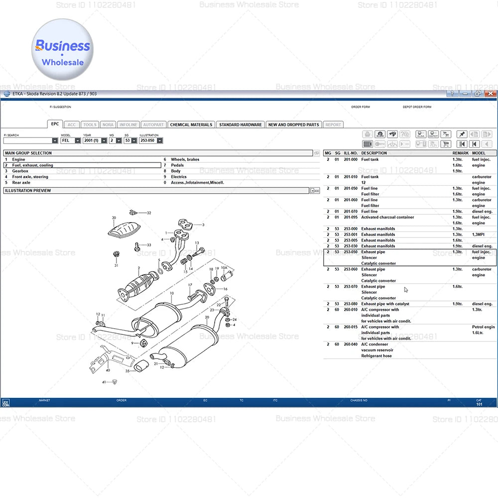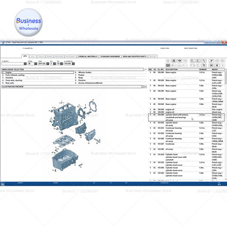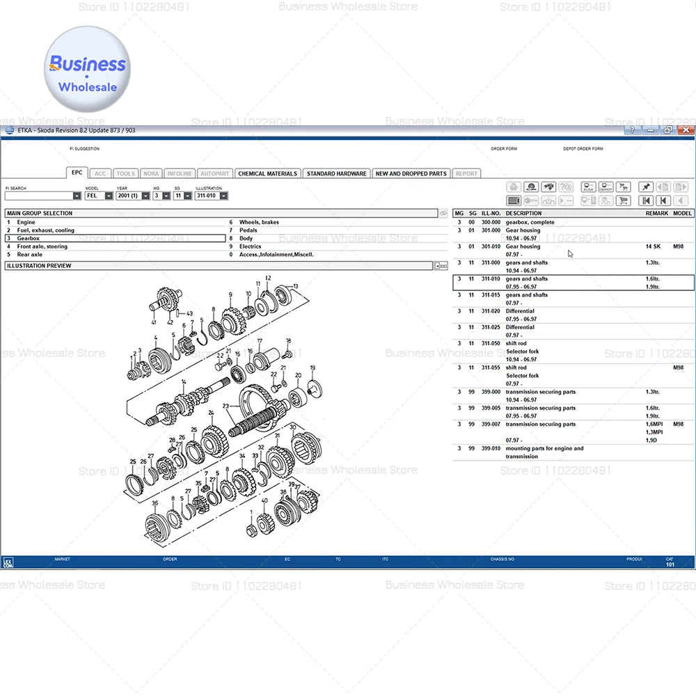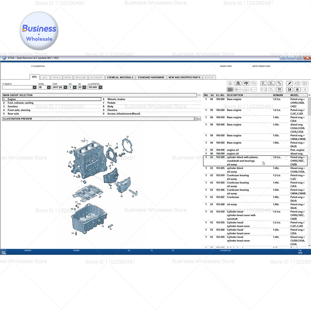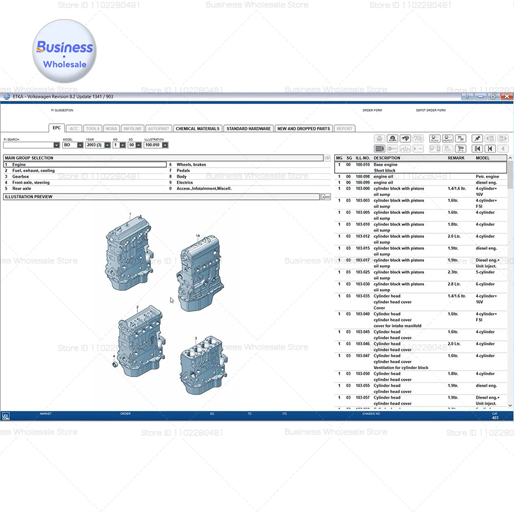 "Представяме каталога на Volkswagen ETKA 8.2 Виртуална машина за превозни средства на VW Group — обширна, официална база данни за резервни части, проектирана за Volkswagen, Audi, Seat, Skoda и VW Комерчески превозни средства. Версията на виртуалната машина ETKA A/V8.2 предоставя илюстрирани предварителни прегледи на ключови системи на превозното средство, включително Двигател, Гориво, Изпускателна система, Охлаждане, Скоростна кутия, Преден мост, Управление, Заден мост, Колела, Спирачки, Педали, Каросерия и Електрика, помагайки ви да разберете параметрите на частите по-бързо и с по-голямо доверие."