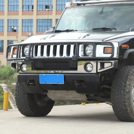 Подобрете вашия Hummer H2 (2003-2009) с капачката за фарове против мъгла от неръждаема стомана в сребрист цвят. Изработена от висококачествена неръждаема стомана, тази декоративна капачка добавя премиум хромиран акцент към фаровете против мъгла, като същевременно защитава корпуса на фаровете от надрасквания и износване. Сребристото покритие улавя светлината за смел и изискан вид, подобрявайки външния вид на предната част на вашия камион без да променя прилягането или функцията.