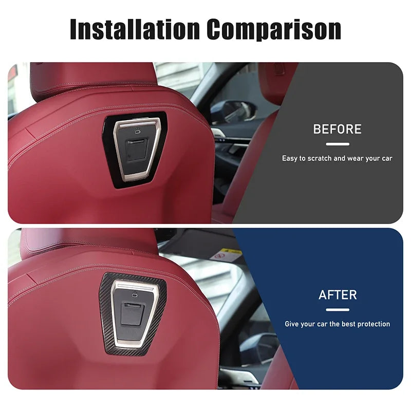 Изработена от висококачествено истинско карбоново влакно с карбоново покритие, тази рамка за облегалка е проектирана да се вписва безпроблемно в интериора на BMW. Съвместима е с BMW 5 Series G60 2024+ и се монтира лесно с включената автомобилна лепяща лента — без нужда от пробиване или инструменти.