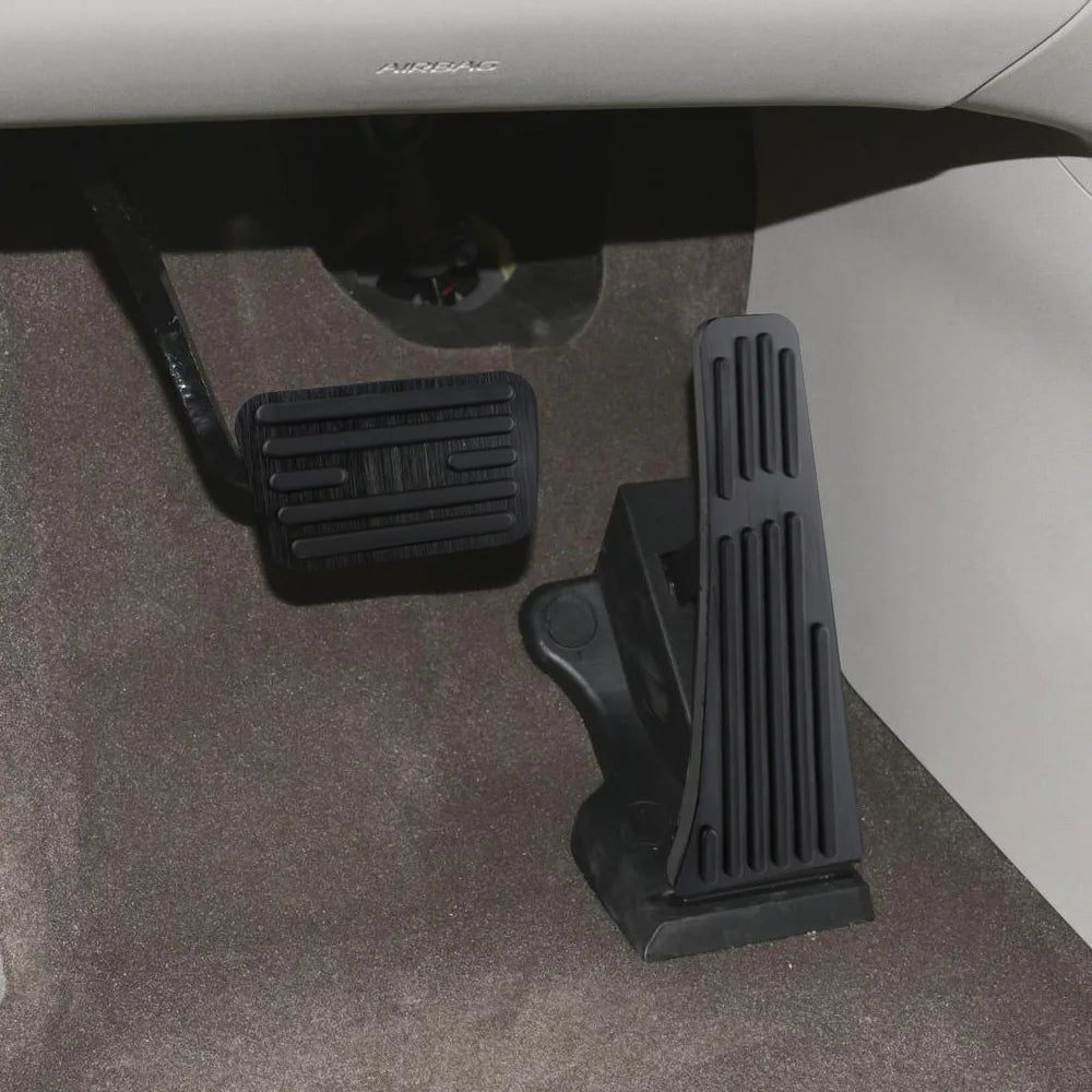 - Инсталацията на спирачния педал изисква премахване на оригиналната гумена подложка; осигурете сигурно прилягане преди шофиране.