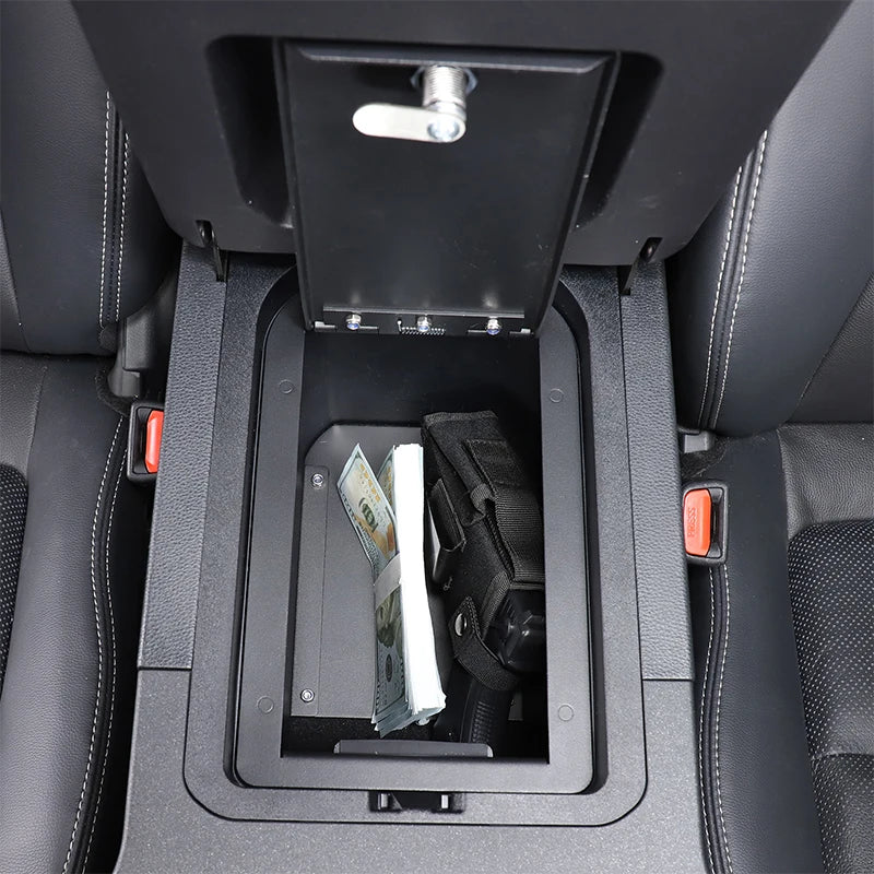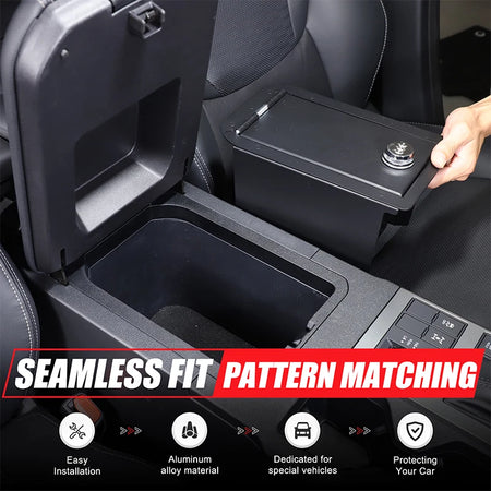 Запознайте се с Toyota Prado 250 Armrest Storage в черно с ключалка за поверителност — съществено подобрение за Toyota Land Cruiser Prado LC250 2024+. Този сигурен, изработен от въглеродна стомана подлакътник за съхранение скрива ценности зад ключалка с парола за поверителност, помагайки ви да защитите важните неща, като същевременно поддържате кабината подредена и организирана.