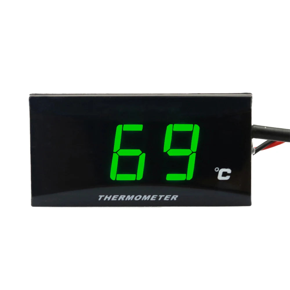 LED дисплеят с подсветка предлага ясна видимост при всякакви условия на осветление с цветови опции Синьо/Червено/Зелено. Работи с 12V DC захранване и предоставя прецизни показания от 0–120°C с 1-градусови стъпки. Когато температурата надвиши 120°C, дисплеят ще мига, за да ви предупреди, така че да можете да реагирате навреме.