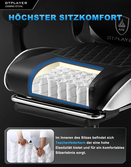 GTPLAYER Ергономичен Игрална Стол с Поставка за Ноги и Възглавница