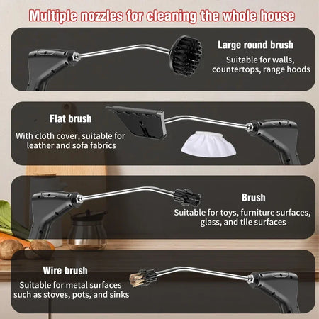 - Грижа за автомобила: дезинфекцирайте и освежете табла, седалки и вентилационни отвори с мощна пара за безупречен, без химикали интериор.