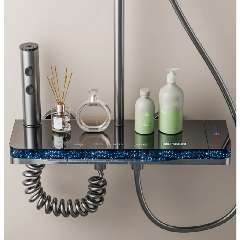 Висококачествен комплект за душ с температура на дисплея, с душ система с 4 функции, смесител за гореща и студена вода, за баня с звездно небе