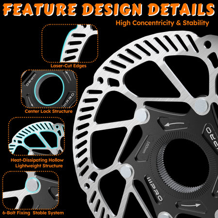 IIIPRO Централен Заключващ Велосипеден Дисков Ротор, Неръждаема Стомана CNC Лазерно Рязан, Издръжлив Хидравличен Дисков Спирачен Ротор