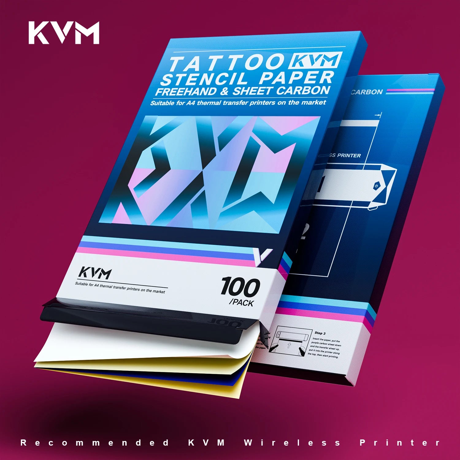 KVM 100 Листа Татуировка Преносна Хартия A4 за Термален Копир от JC TATTOO е създадена за по-добро печатно изживяване. Тази професионална преносна хартия е проектирана за работни потоци с перманентен грим, предоставяйки ясни преноси на шаблони от вашия термален копир всеки път.