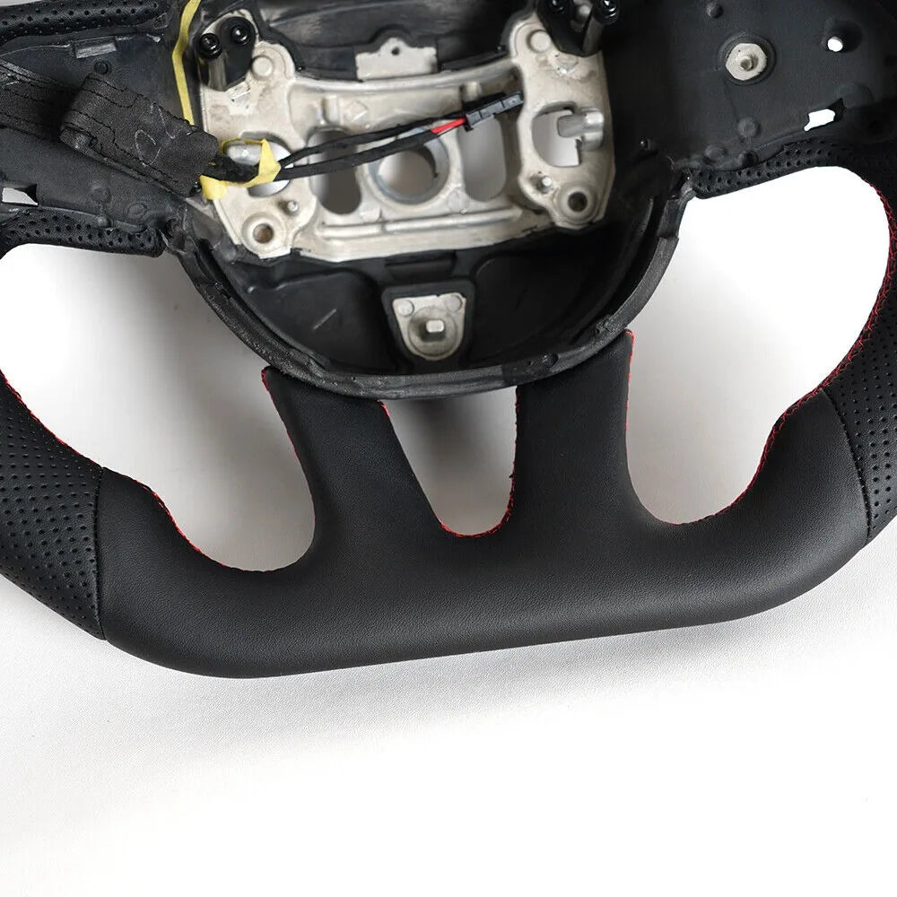 Подобрете вашия Dodge с кожен волан Challenger SRT Hellcat в смел D-образен дизайн и впечатляваща червена ивица. Този премиум волан съчетава гладка и перфорирана кожа с акценти от въглеродни влакна за вид, вдъхновен от производителността, и уверен, удобен захват. Плоският, D-образен дизайн помага да заемете по-агресивна позиция при шофиране, докато захватите за пръсти осигуряват сигурно управление по време на бързи и прецизни маневри. Червените шевове и отличителната червена ивица на 12 часа добавят автентичен стил SRT Hellcat. Включени са изрези за бъдещи подобрения с лостчета (лостчетата не са включени). Това е 100% нов, персонализиран волан, изработен, за да повиши вашия интериор и шофьорско изживяване.