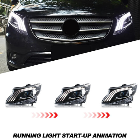 LED фарове за Mercedes Benz Vito Metris с последователен мигач, проектор